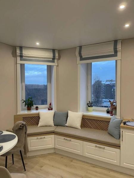 Квартира розташована на 3-му поверсі 5-поверхового будинку. Житлова площа 45 м², кухня 17 м². Є кухня-студія.