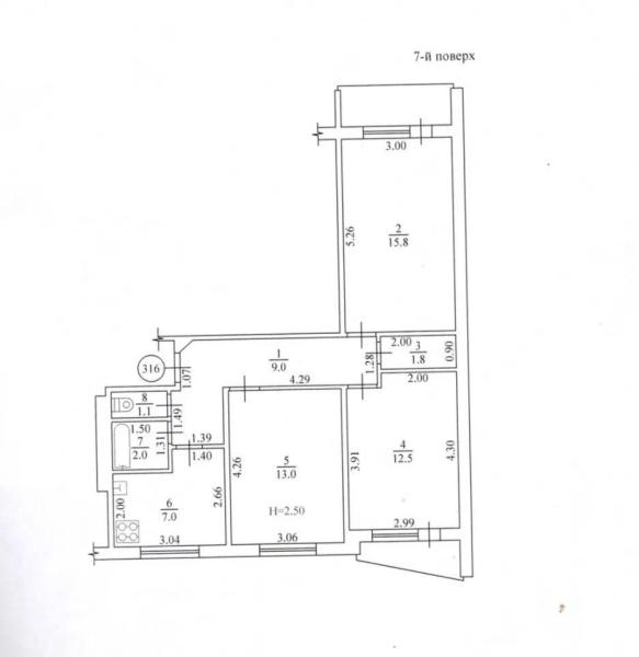 Этаж – 5/9, не угловая, общ. площадь – 45 м²., кухня – 7 м²., комнаты отдельные.