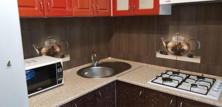Кухня укомплектована.Есть микроволновка, электрический чайник, посуда.