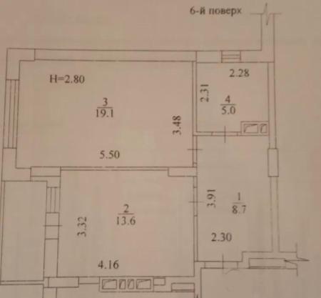 Высота потолков свыше 3 метров. Продуманная планировка: просторный зал, уютная спальня, кухня, большая прихожая и два санузла.