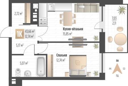 2-комн квартира ЖК Soul Park Замарстинов
