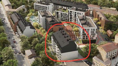 Предлагаю квартиру в новом ЖК Avalon Yard с роскошным видом на Новый Свет, ул. Замарстыновская, Львов. 1-комнатная квартира бизнес-класса 41.99 м² без внутренних работ. Кухня – 20.02 м². Этаж 4 из 8.