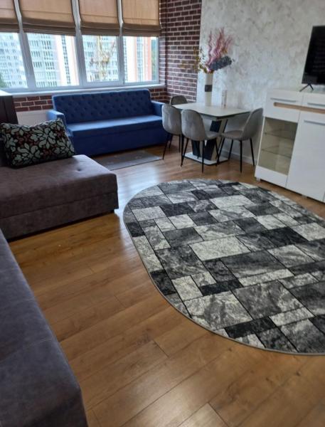 На первом этаже квартиры находится гостиная, кухня, коридор, санузел (ванная, душевая кабина), лоджия.