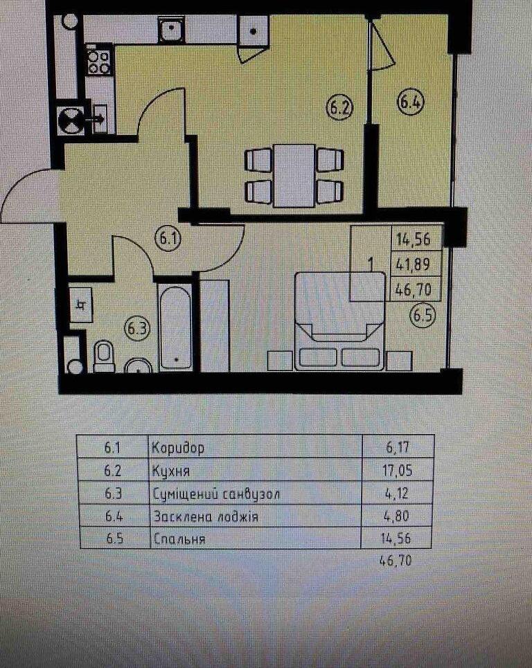 - Площадь общая, м²: 46.70