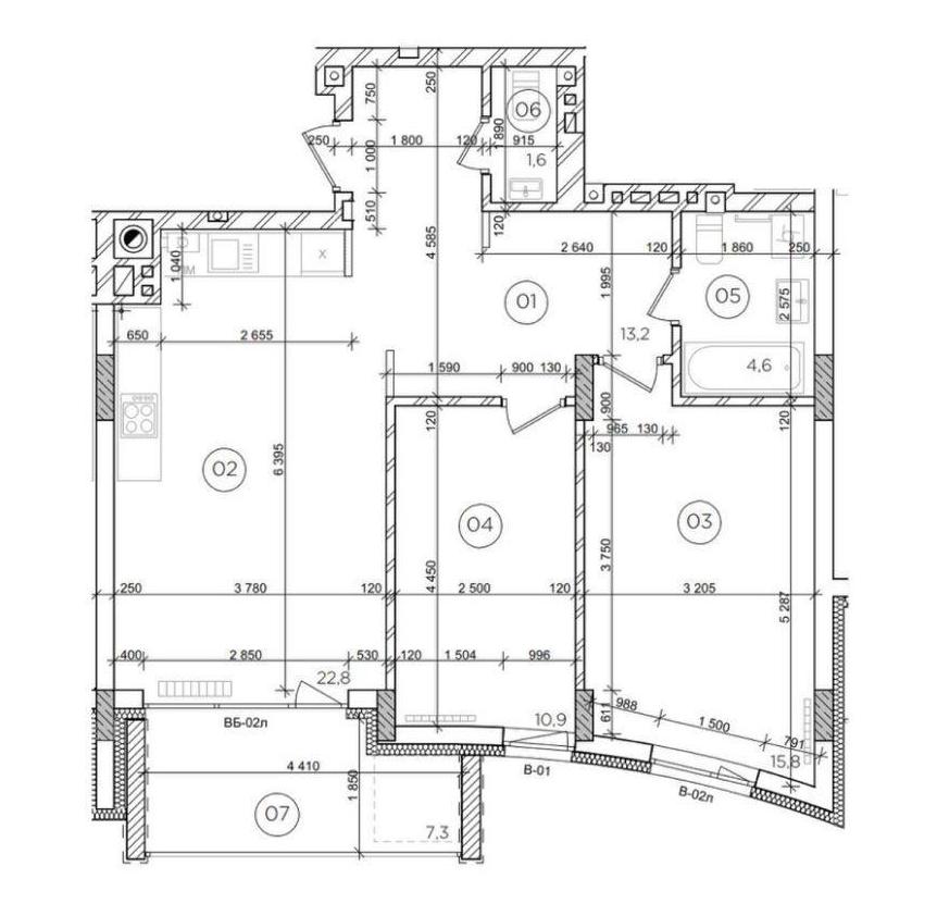 - Площадь кухни, м²: 22