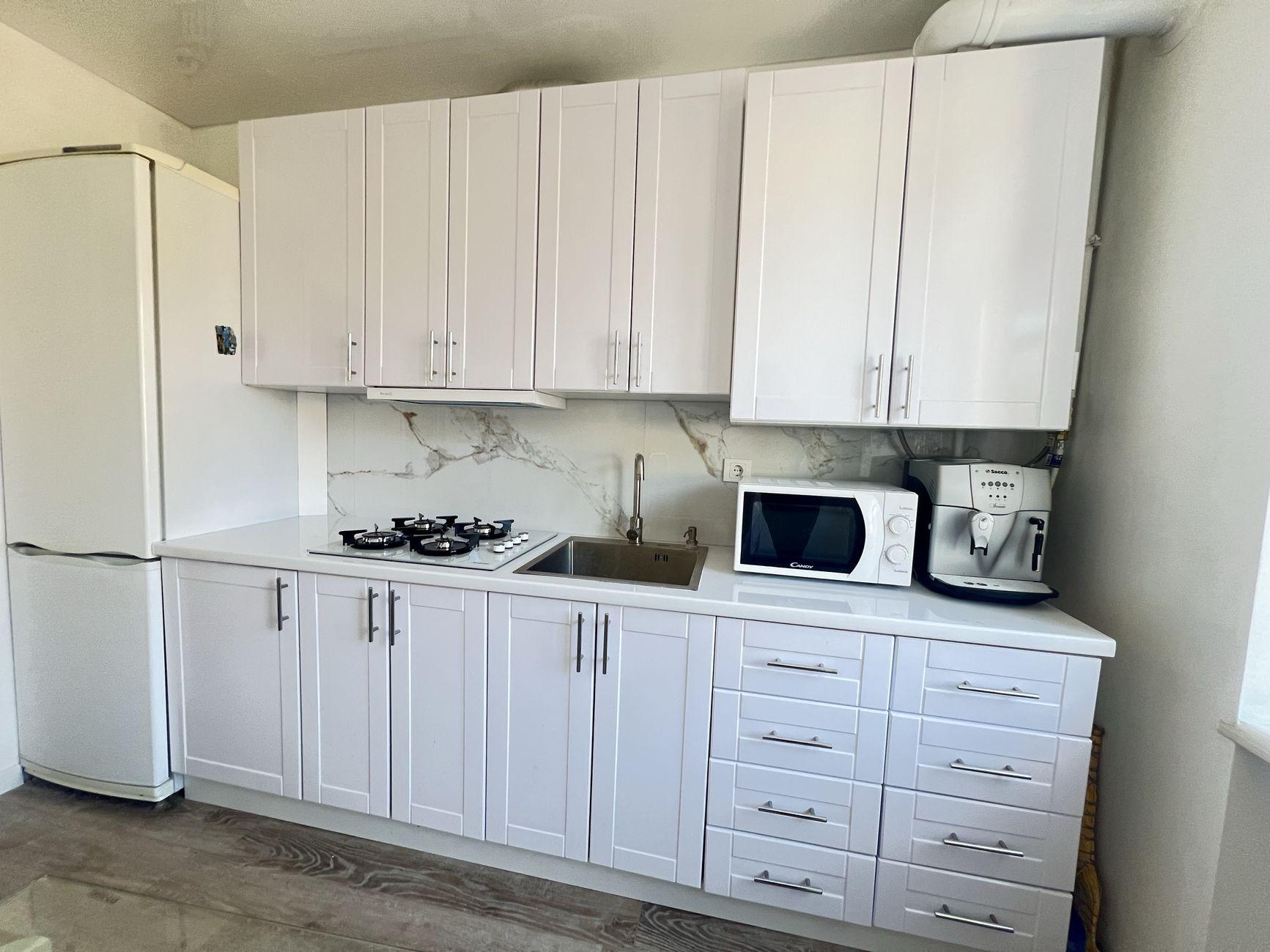 Сделан ремонт, с новой мебелью на кухне и в ванной, новые окна, двери, ламинат, установлены все счетчики, индивидуальное отопление (медные трубы).