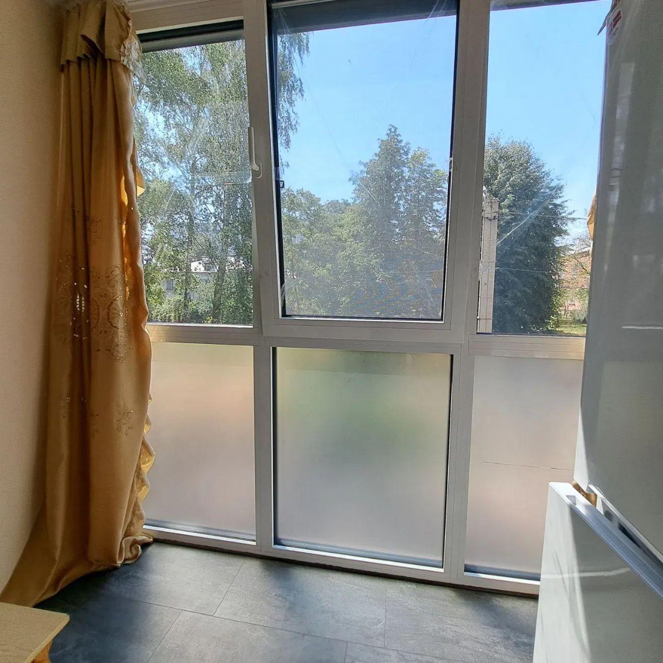 В комнате балкон, застеклён,