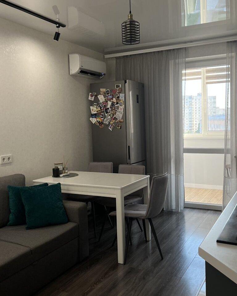 Продам квартиру в новобудові, 1-кімнатна 41 м² в житловому комплексі "Архітекторів", з капітальним ремонтом. Розташована на вулиці Домобудівельній, Олексіївка. Близько до станції метро "Перемога", у спальному районі міста Харкова.
