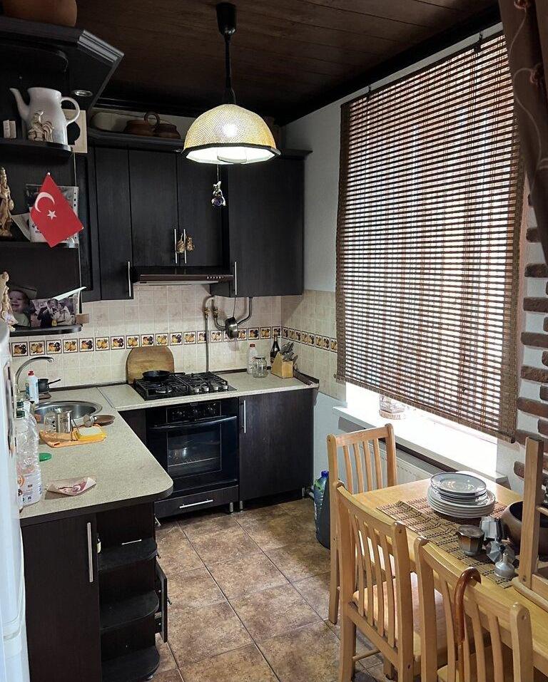 Квартира расположена на 3 этаже 3-этажного дома. Жилая площадь 34 м², кухня 8 м².