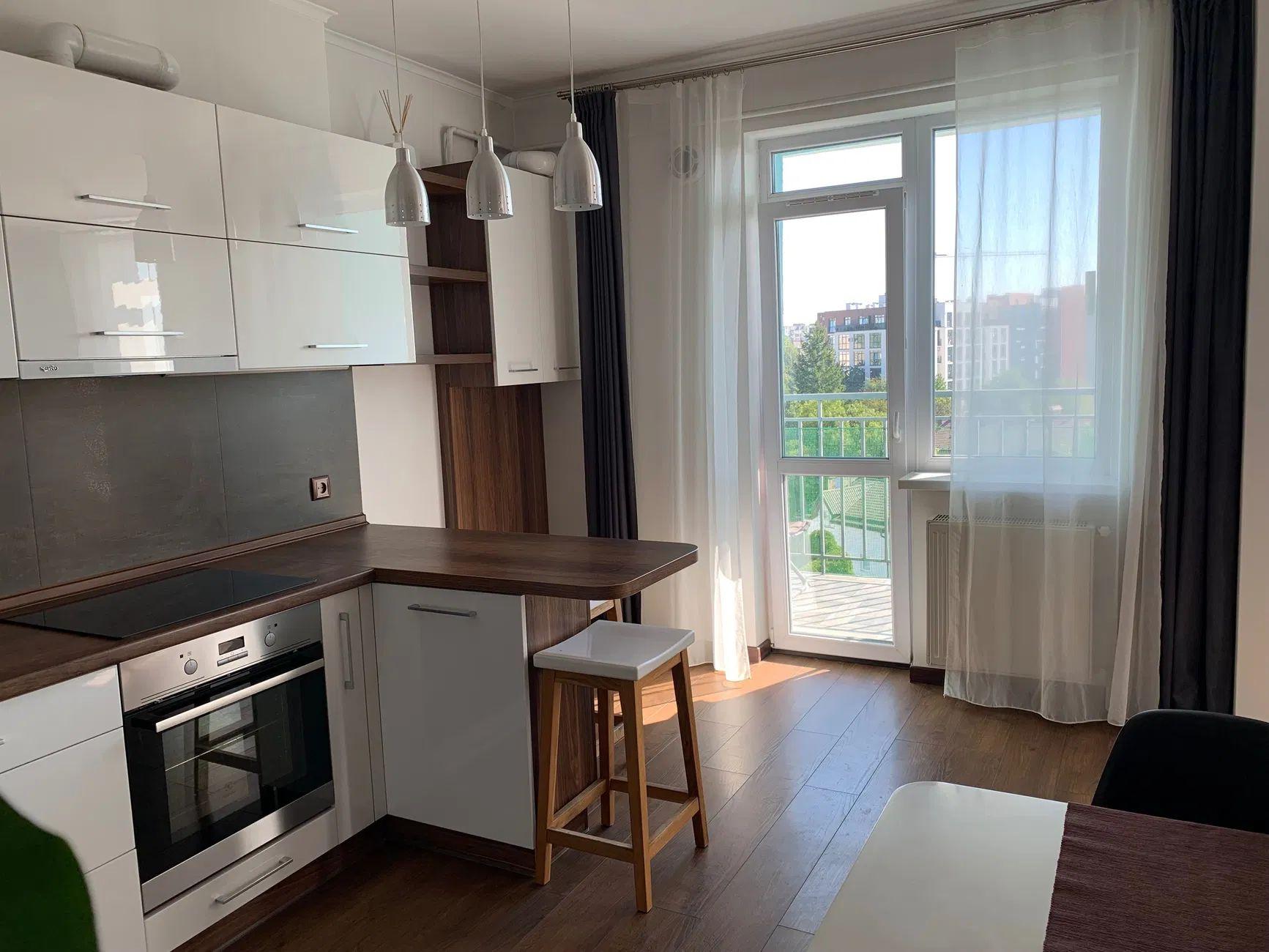 Квартира розташована на 7-му поверсі 10-поверхового будинку. Кухня-студія 15 м².