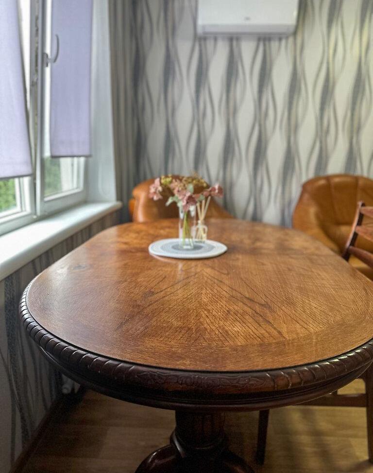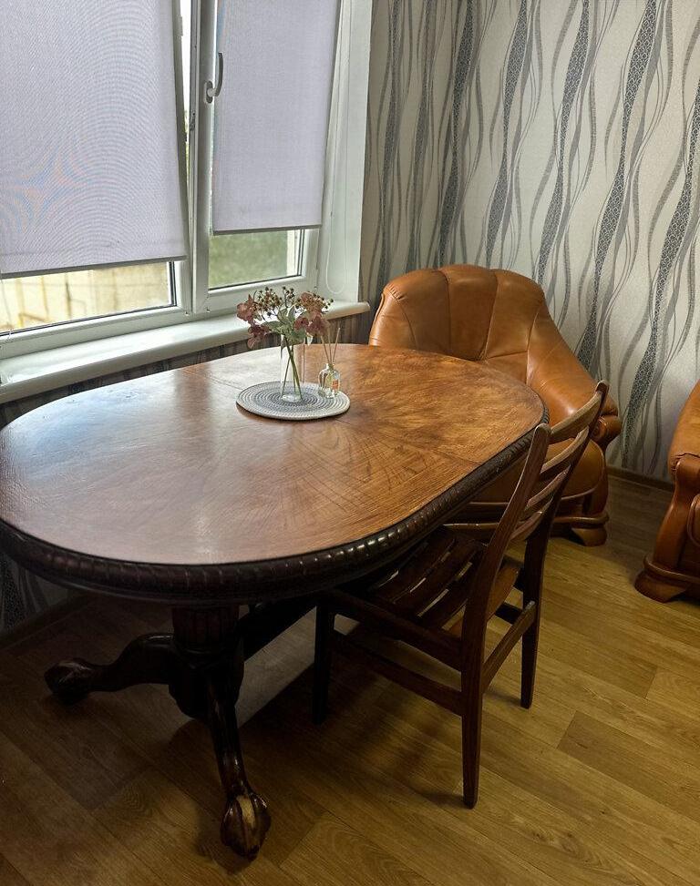 Диван, 2 крісла, обідній деревʼяний стіл, телевізор