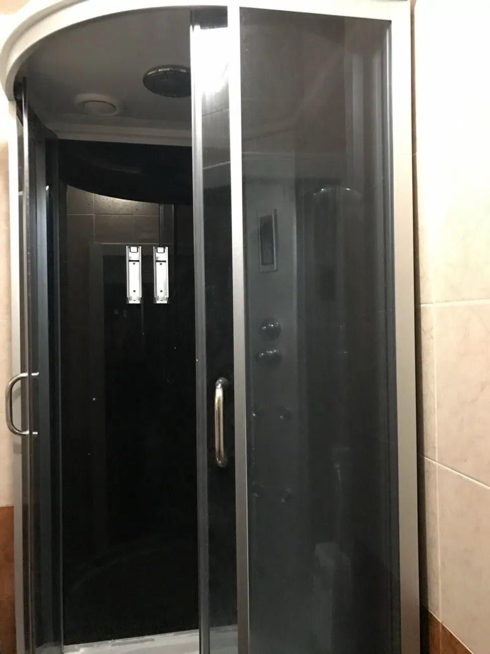 Душова кабіна, бойлер, холодильник, мікрохвильова піч, електроплитка, чайник.