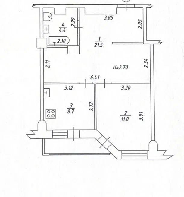- Площадь кухни, м²: 21