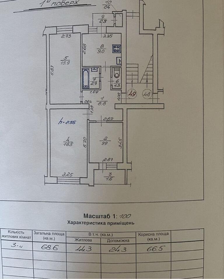 3 комн. · 1/5 эт. · 68.80 м²