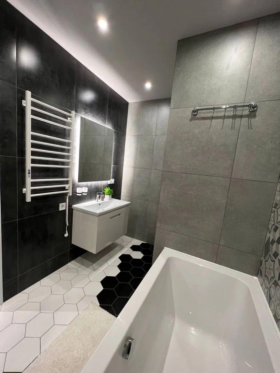 Новострой, площадь 68м.кв . Квартиру делали с душой для себя, две отдельные спальни, большая кухня студия , просторная ванна + душевая зона, гардеробная с гостевым с/у . Кухня из натурального дерева, дизайнерская мебель, техника вся встроенная, включая посудомойку, Осмос.