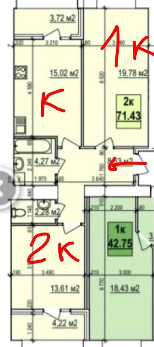 Продается квартира в новом ЖК "Славянский" (без внутренних работ), 2 комнаты, 72 м², кухня 15 м².