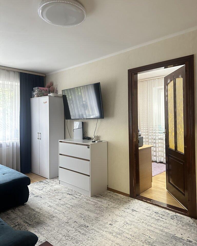 2 комнаты с жилой площадью 28,30 м² и кухней 7 м². Квартира расположена на первом этаже 4-этажного дома.