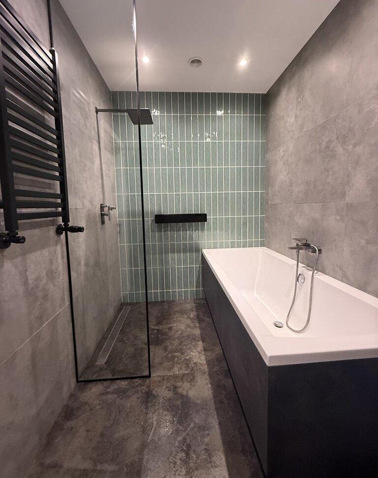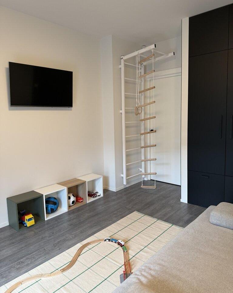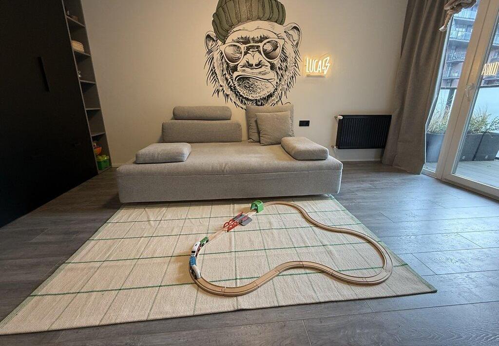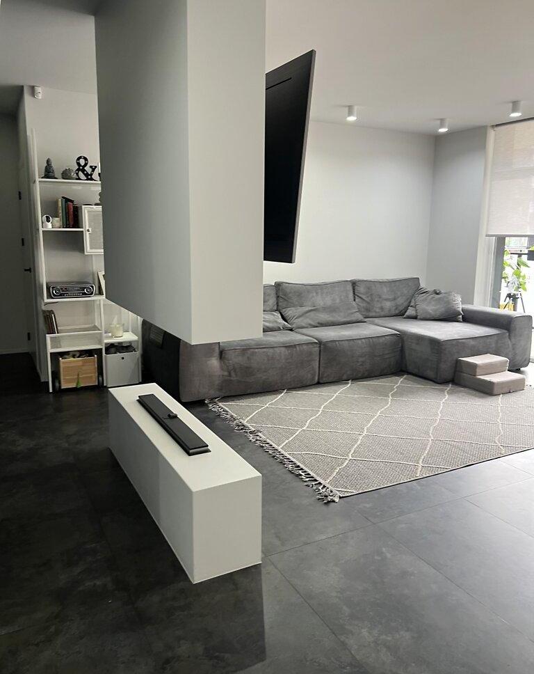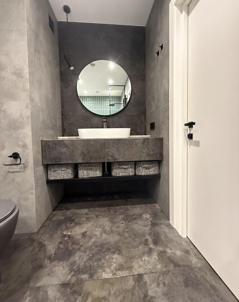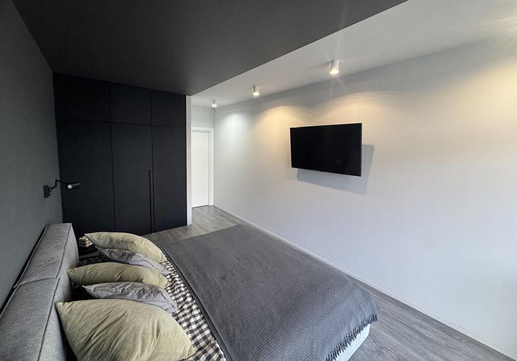 Современная квартира с дизайнерским ремонтом, просторная кухня-студия 55 м², спальня, детская комната, санузел душ+ванная, техническое помещение-прачечная. Из кухни-гостиной и детской есть выход на просторную террасу, окна выходят во двор. Из спальни выход на балкон с видом на Высокий замок.