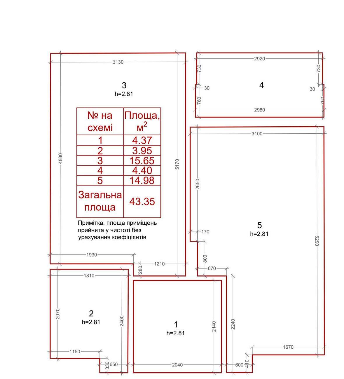 - Площадь общая, м²: 43