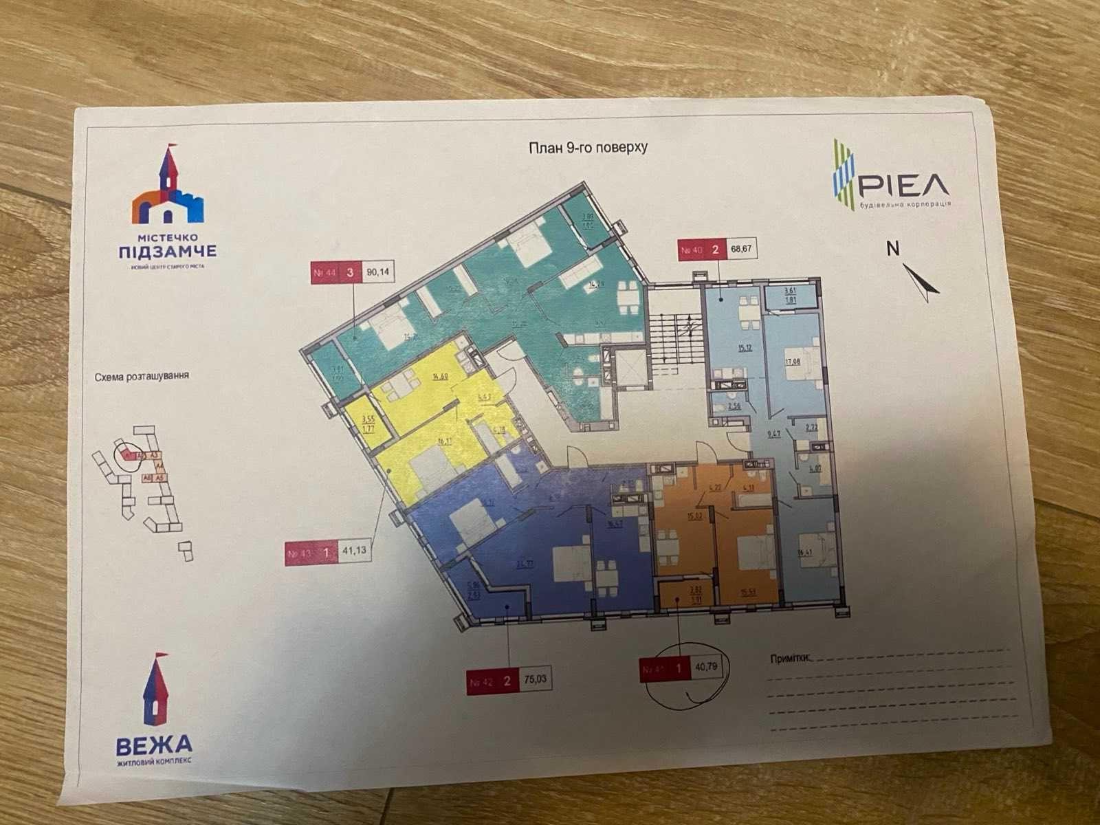 - площадь 43 кв метра, 9-й этаж