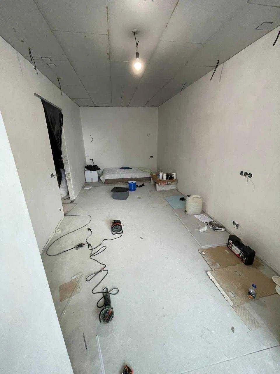 Сделаны все черновые работы, подключена проводка, теплый пол по всей квартире, на полу ламинат, стены под обои, поменяны входные двери, с/у полностью готов.