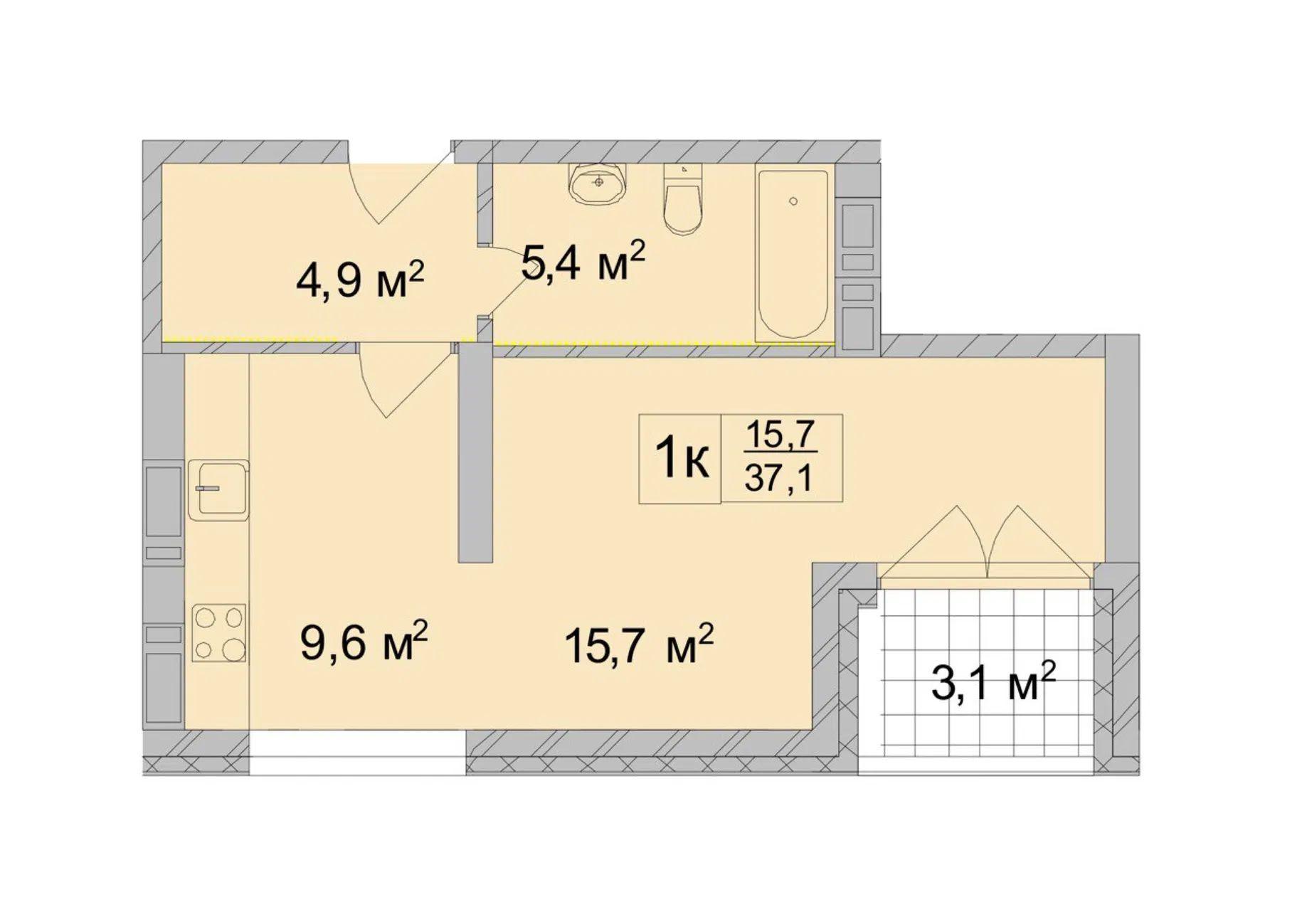 Общая площадь: 37.10 м²
