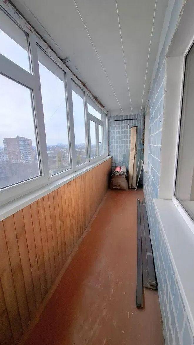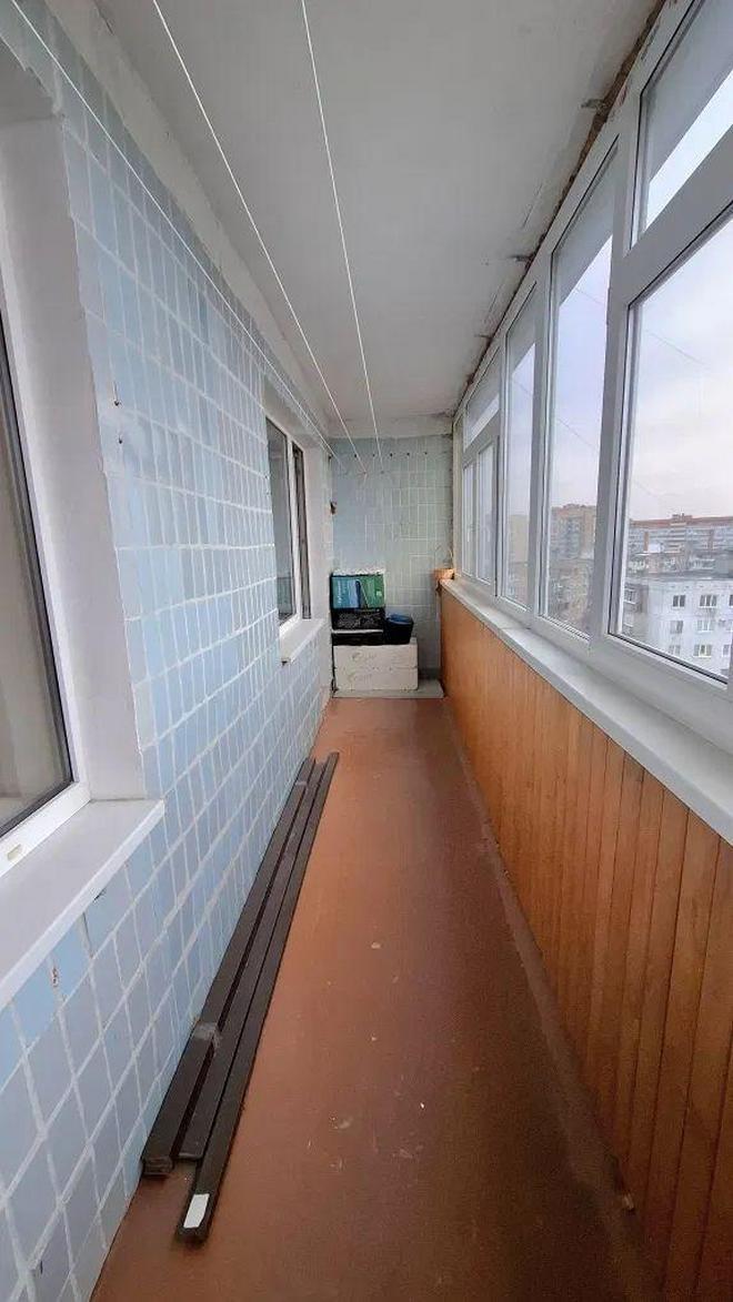 Лоджия на кухню и комнату застеклена МП окнами, утеплена, обшита вагонкой.