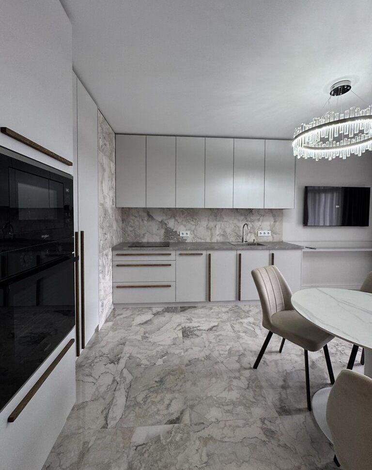 Основные преимущества: панорама на город; просторная планировка: кухня, две отдельные комнаты, ванная комната и широкий балкон на кухне; теплый пол по всей квартире; встроенная техника на кухне от известных брендов; новостройка с лифтом и современным фасадом; ремонт в стиле современного минимализма.