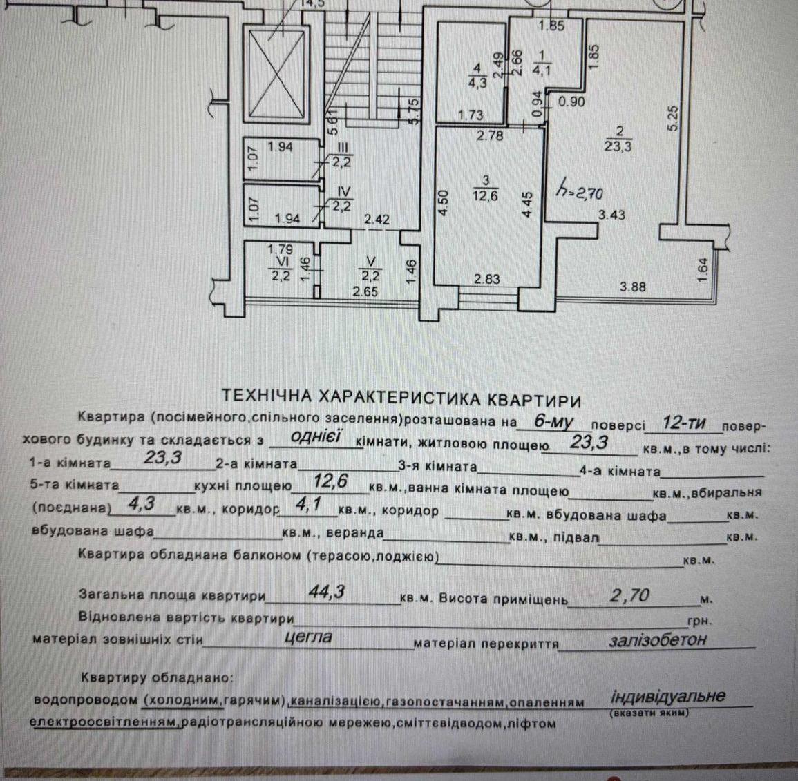 Квартира находится на 6 этаже 12-этажного дома. Кухня – 12.60 м².