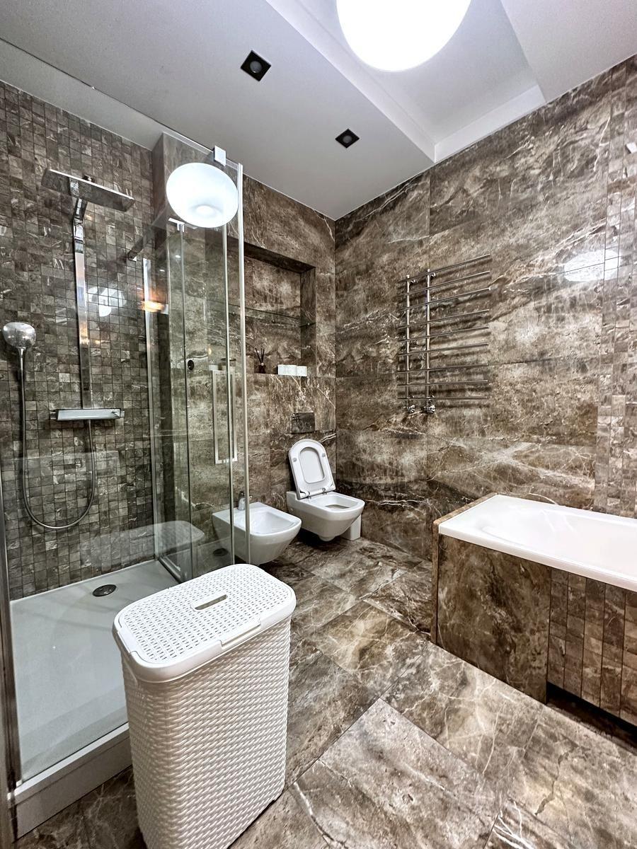 Квартира з ремонтом в елітній новобудові на вул. Бойківська, 5б (забудовник Еко-Дім). В квартирі встановлені усі меблі, сантехніка та прилади. Стан квартири хороший. У кухні, коридорі, санвузлі та вздовж балкону встановлена тепла підлога. Пральна машинка Miele, сантехніка Villeroy & Boch, шафи-купе Komandor.