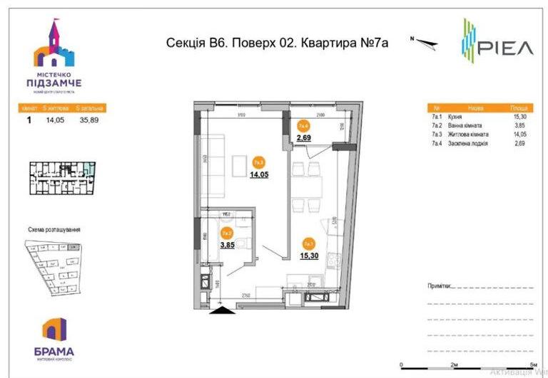 Пропонується 1-кімнатна квартира площею 35,89 м² у сучасному житловому комплексі ЖК «Підзамче» від надійного забудовника RIEL.