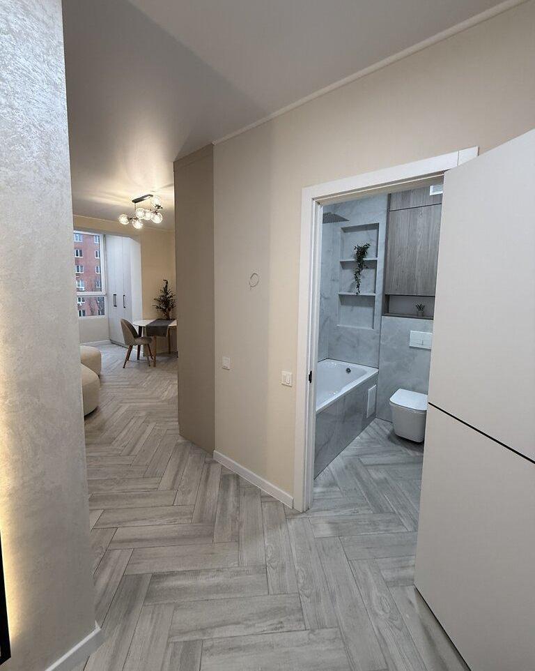 Продается 1-комнатная квартира в новом жилом комплексе Старого города. Квартира с дизайнерским ремонтом, общая площадь – 45 м². Расположена в современной новостройке с улучшенной планировкой и большой гардеробной.