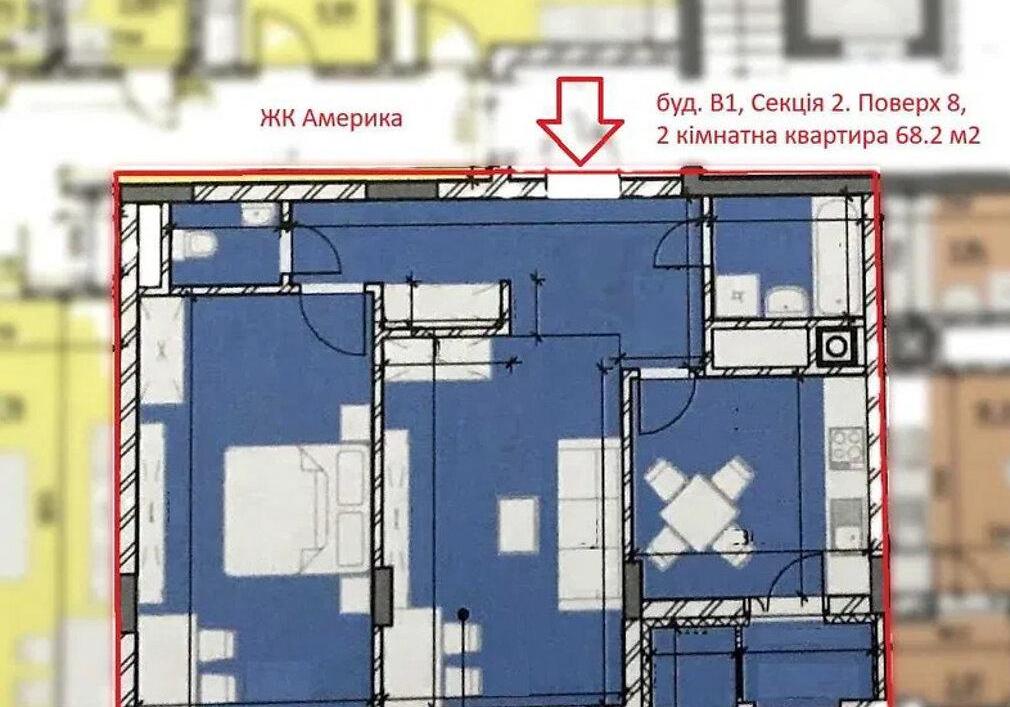 Продам 2-комнатную квартиру в ЖК "Америка" по адресу г. Львов, ул. Владимира Великого 10. В1 Секция 2 Этаж 8
