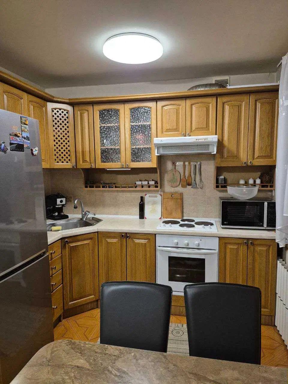 Ухоженная квартира, паркетные полы, деревянные окна и межкомнатные двери, дубовая кухня, раздельный санузел в плитке, установлены бойлер и счетчики на воду, кондиционер.