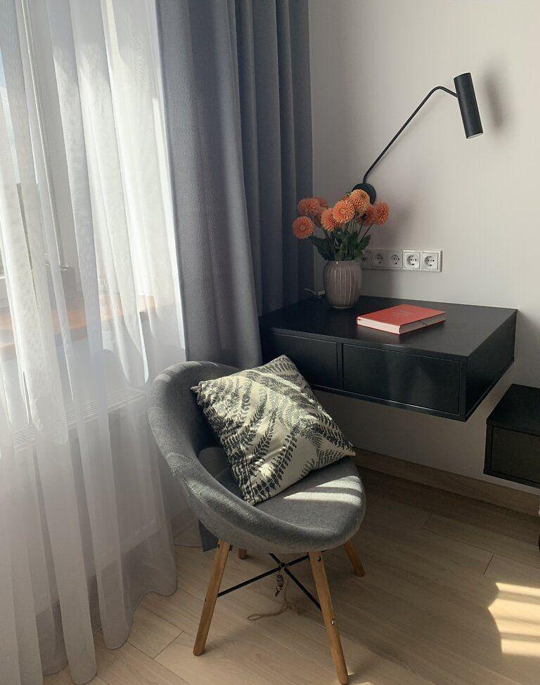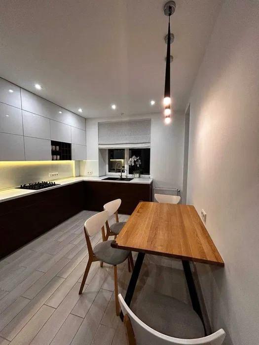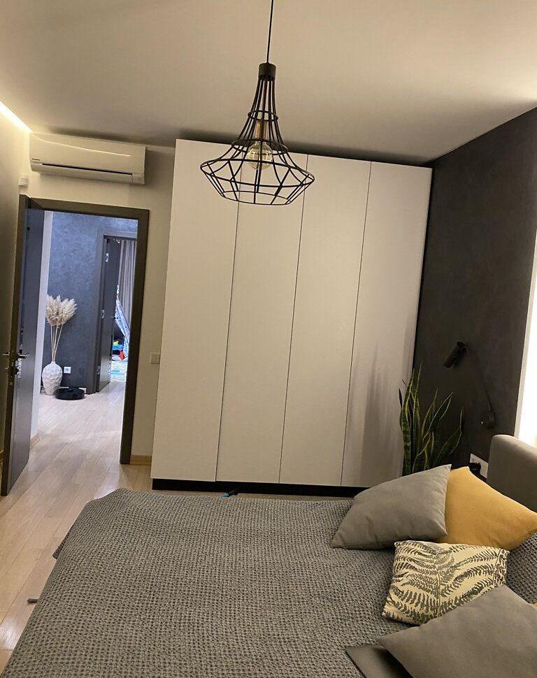 Особенности данной квартиры – современный дизайн, дизайнерская мебель (AGT, EGEER), искусственный камень в отделке, большие панорамные окна с видом на город, квартира полностью готова к заселению. В доме подземный паркинг, дизайнерский ремонт подъездов и коридоров общего пользования, есть консьерж, бомбоубежище.