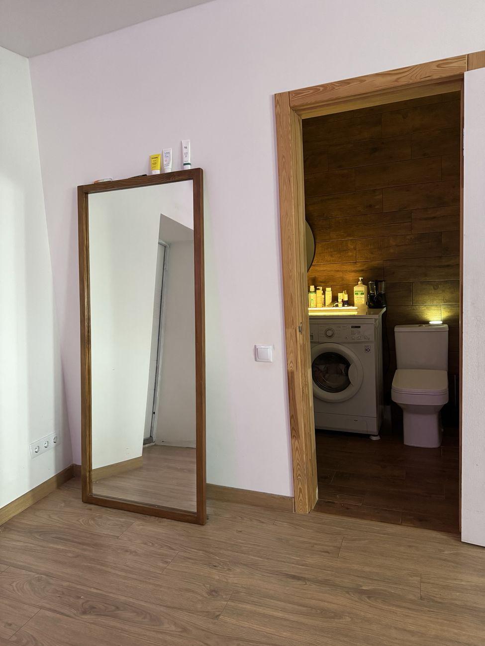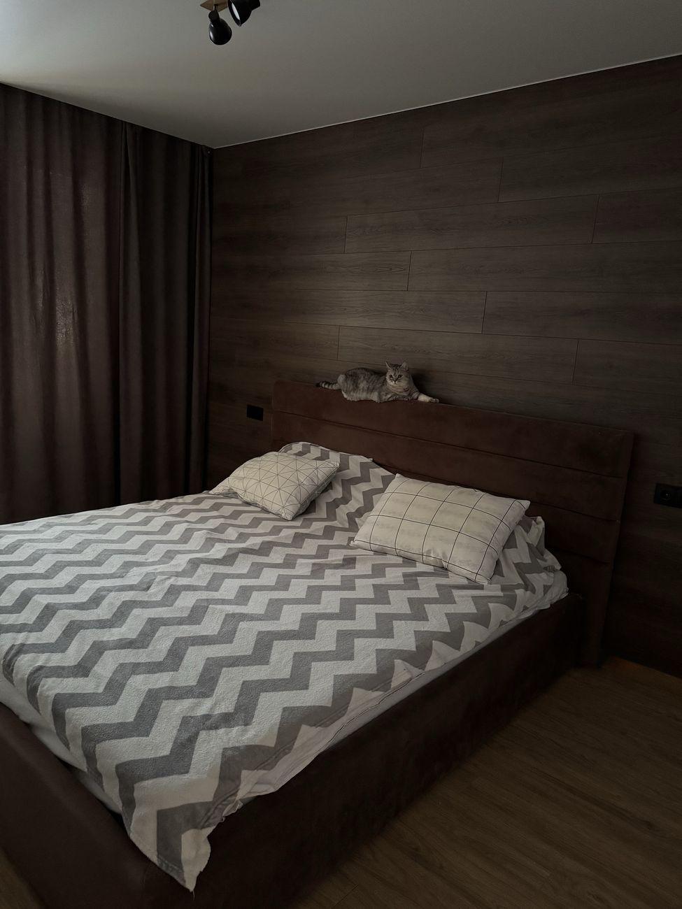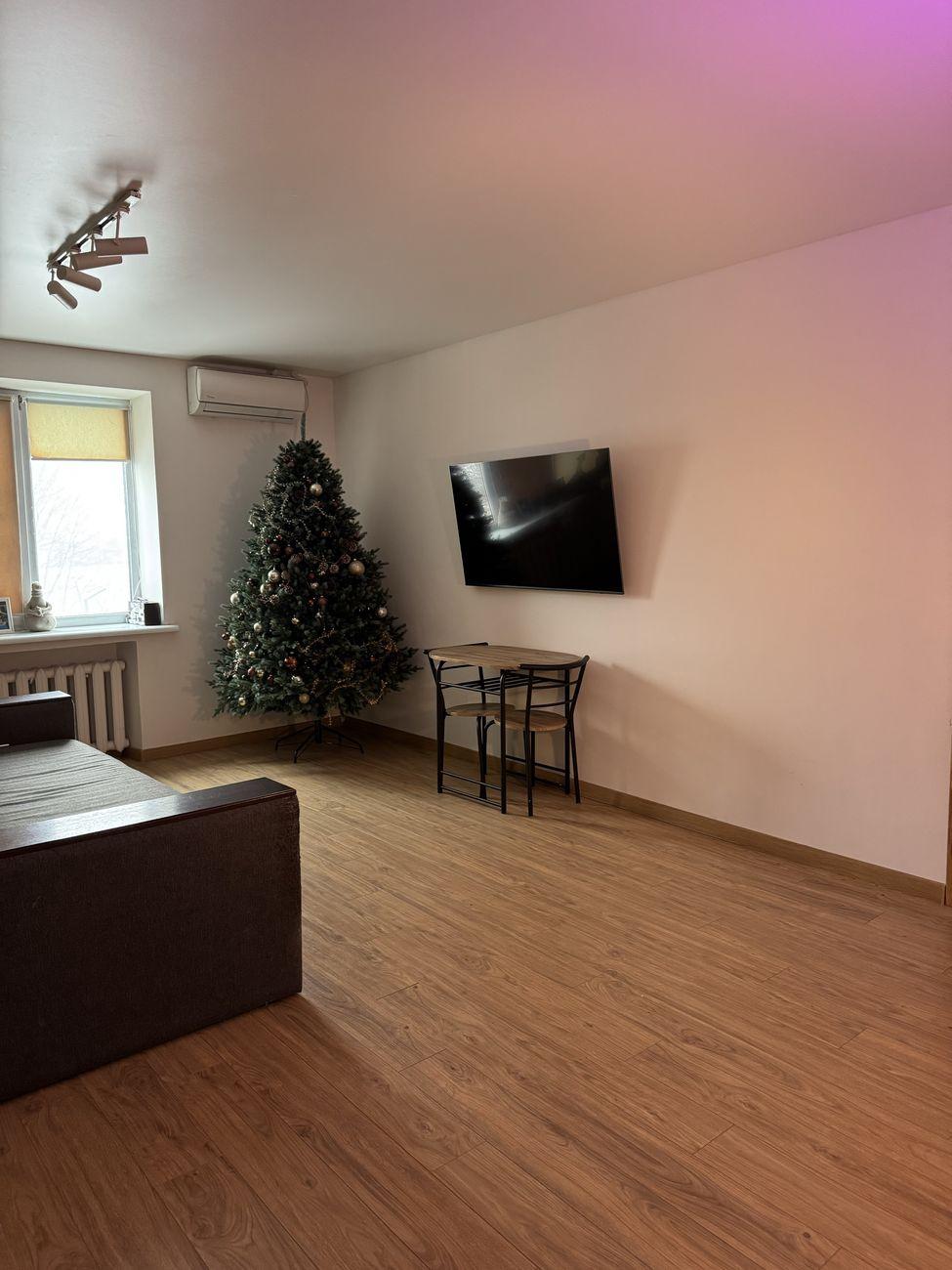 Просторная светлая квартира-студия с отдельной спальней 50 кв м Уютная и очень теплая квартира в кирпичном доме 2000 года постройки. Зимой здесь настолько комфортно, что можно ходить в майке и босяке даже с открытыми окнами. Свежий ремонт, новая проводка, поменянные трубы. Стены хорошо окрашены, по вашему желанию можно бюджетно перекрасить в ваши любимые цвета, сделать зонирование, как вам нравится. Продуманная планировка, просторная студия-гостиная с большим количеством света и отдельная уютная спальня из которой выход на балкон (застекленный и с решетками) В спальне огромный незаметный встроенный потолочный шкаф, вмещает очень много всего. Благодаря чему в квартире не захламлено. Также большой шкаф между кухней и студией для хозяйственных вещей. Второй этаж – удобный вариант для повседневной жизни без лифтов и долгого подъема по лестнице, особенно в часы отключения света. Чистый тамбур со шкафом для обуви. Дом ОСМД, ухоженный, двор с детской площадкой и спортивной площадкой. Также во дворе баскетбольная и футбольная площадка. Тихие и вежливые соседи Никаких проблем с парковкой всегда есть места возле дома или на парковке маркетопта (он находится как раз в доме) Остановка транспорта 2 мин пешком, фитнес-клуб 10 мин пешком