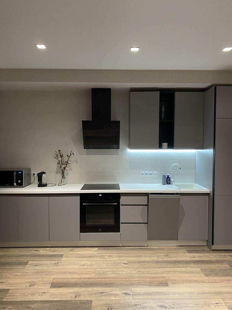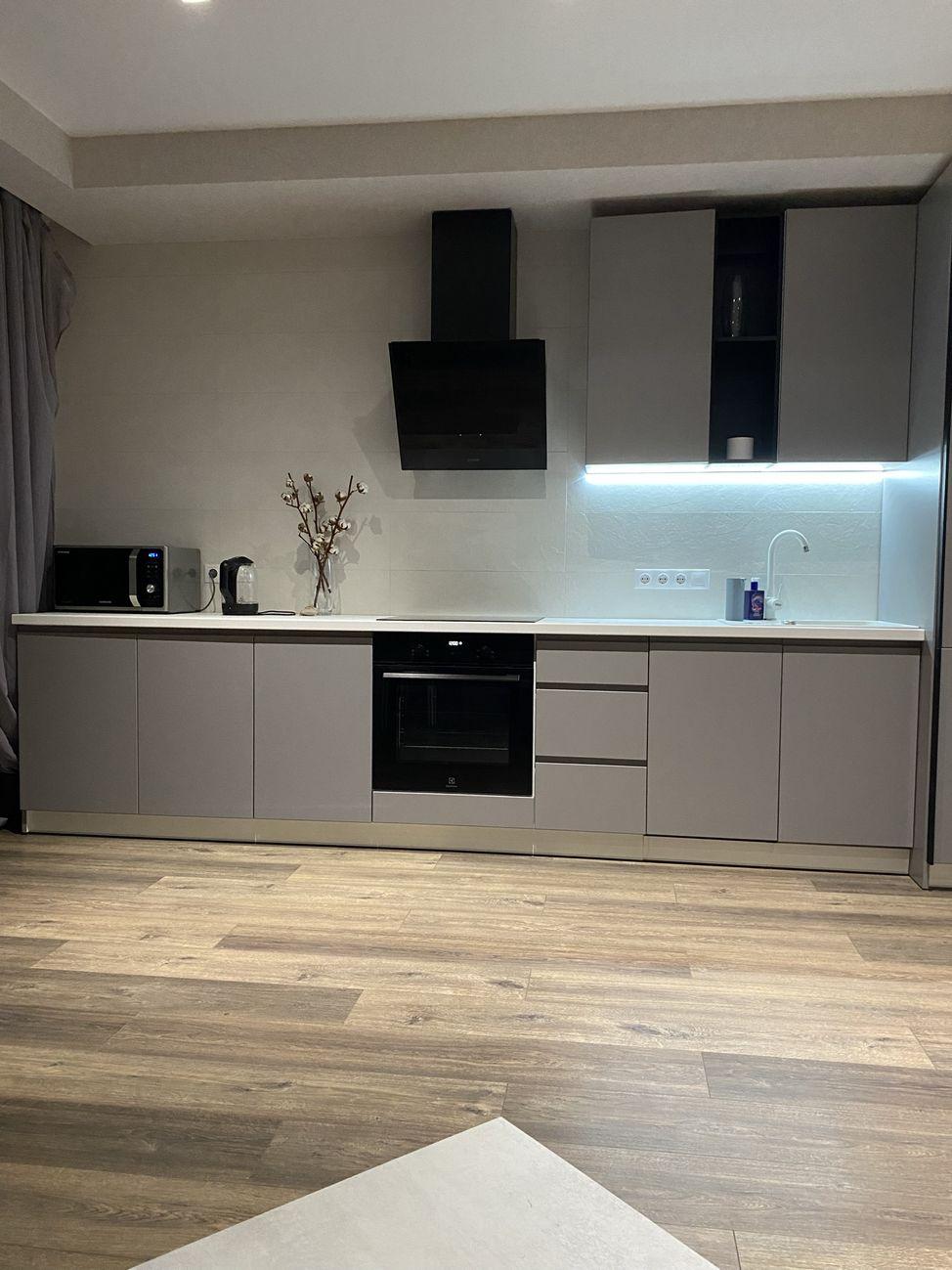 2 великі шафи купе, кухня з фасадами МДФ, комфортне робоче місце, ліжко XL з ортопедичним матрасом, розкладний диван, пральна машина, посудомийна машина, вбудований холодильник, рушникосушарка, індукційна плита, електрична духова шафа, ТВ, кондиціонер, бойлер, мікрохвильовка.