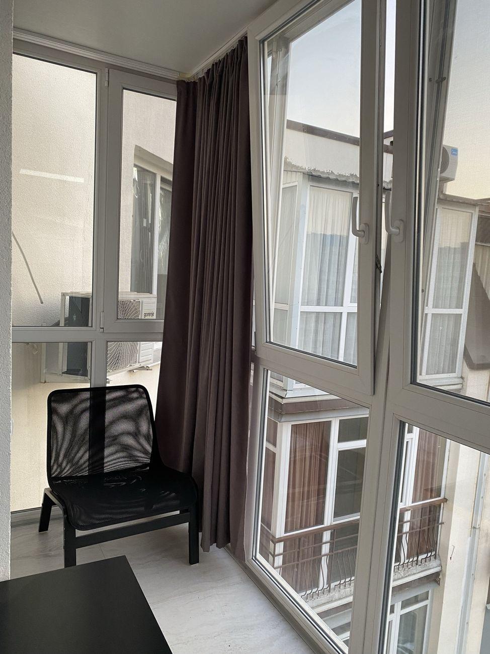 Формат квартири: кухня-студія та окрема спальня (спальня без вікна, зроблена примусова вентиляція), великий панорамний балкон. Світла, тепла, маленькі КП.