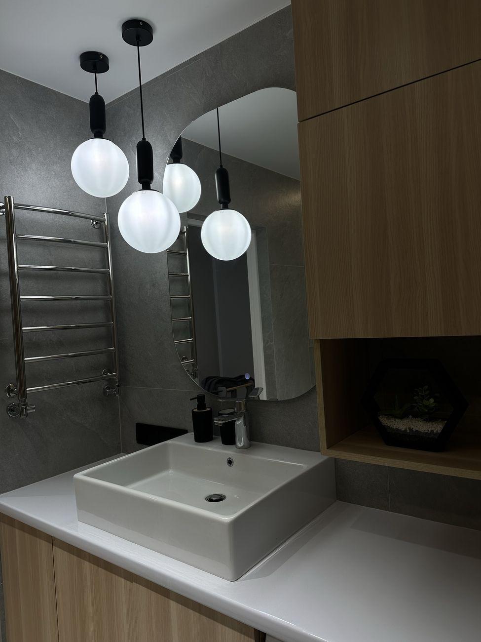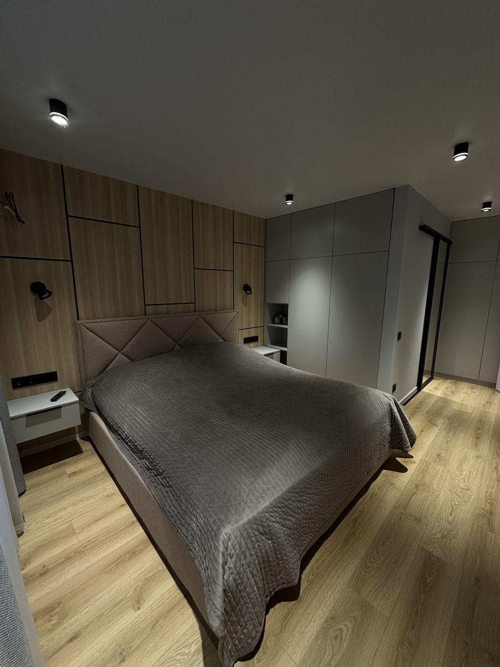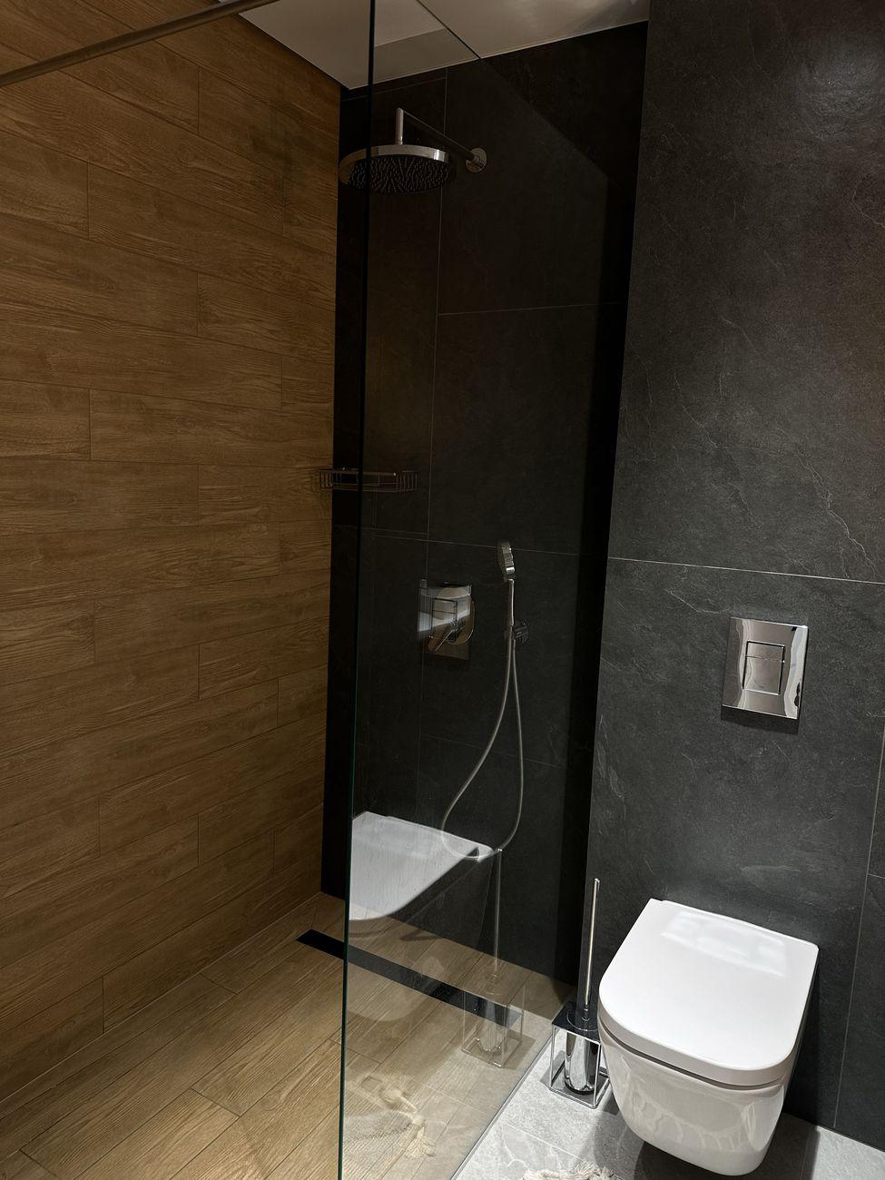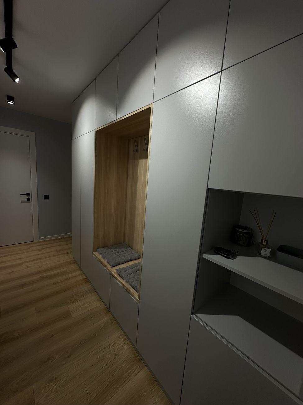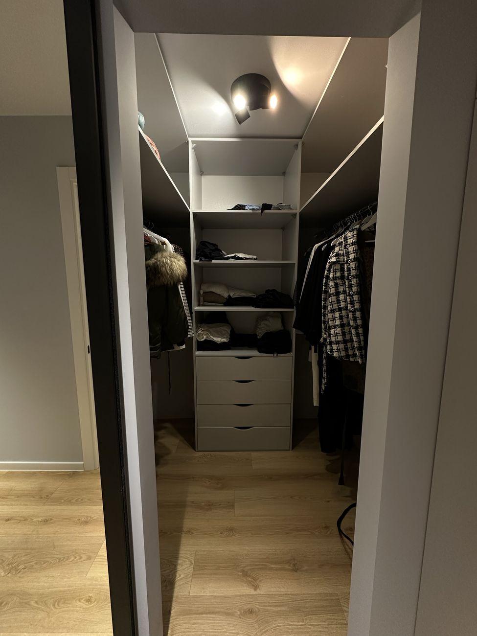 Два санузла с ванной и душевой соответственно. Две огромные гардеробные и большое количество шкафов.