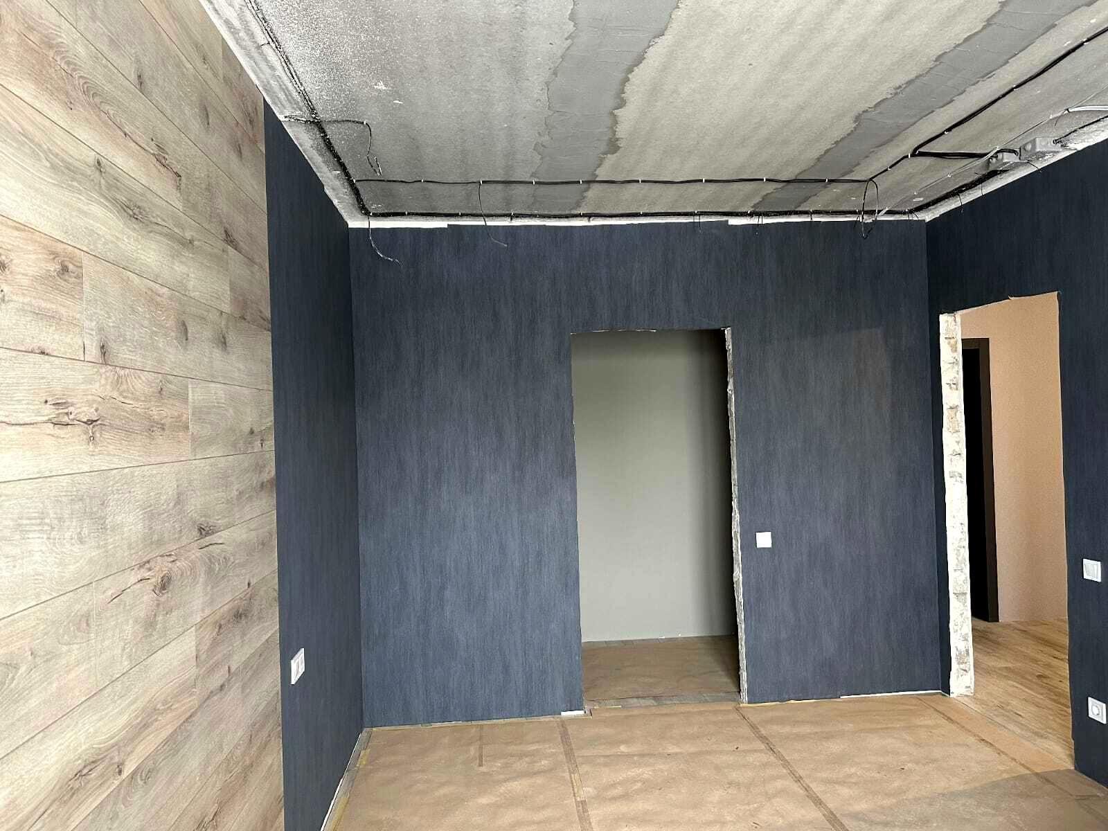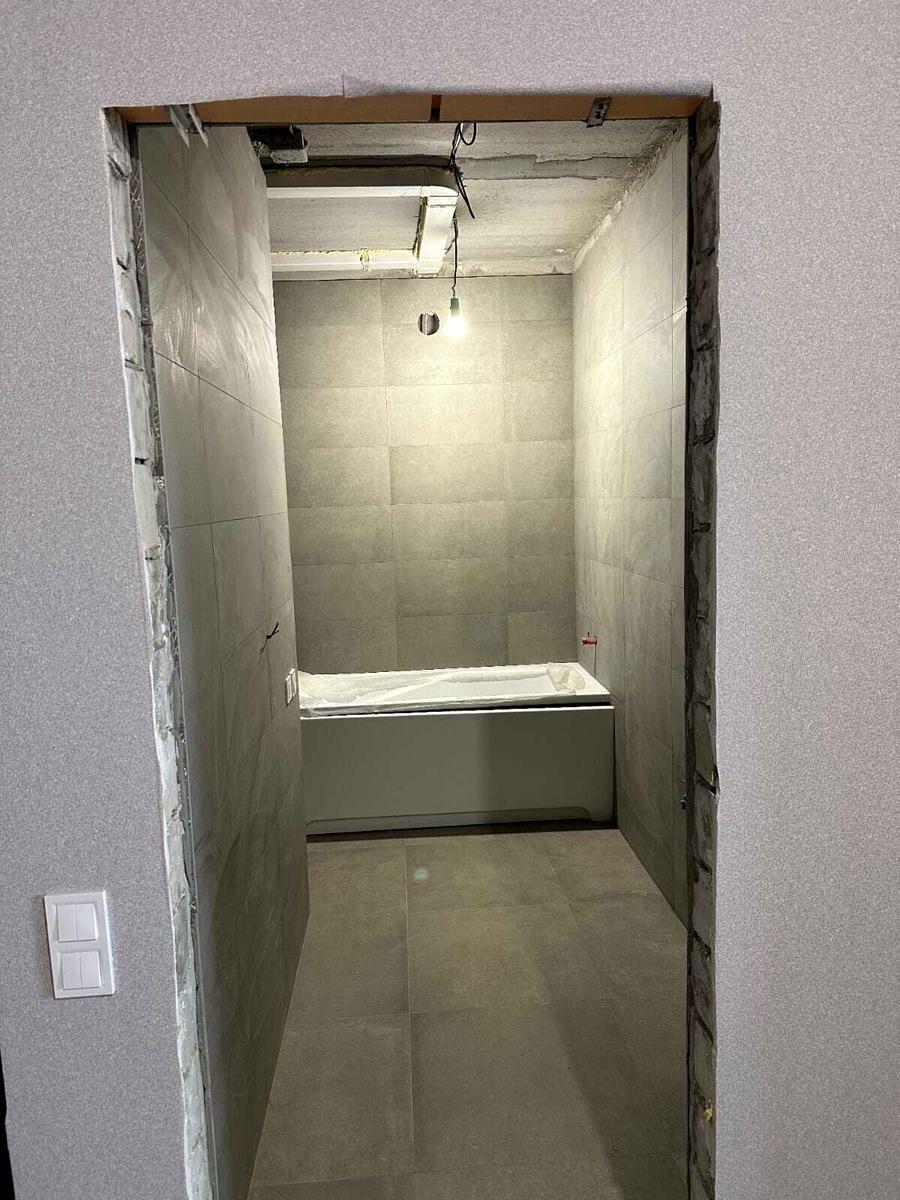 Осталось установить межкомнатную дверь и смонтировать натяжной потолок со светильниками.