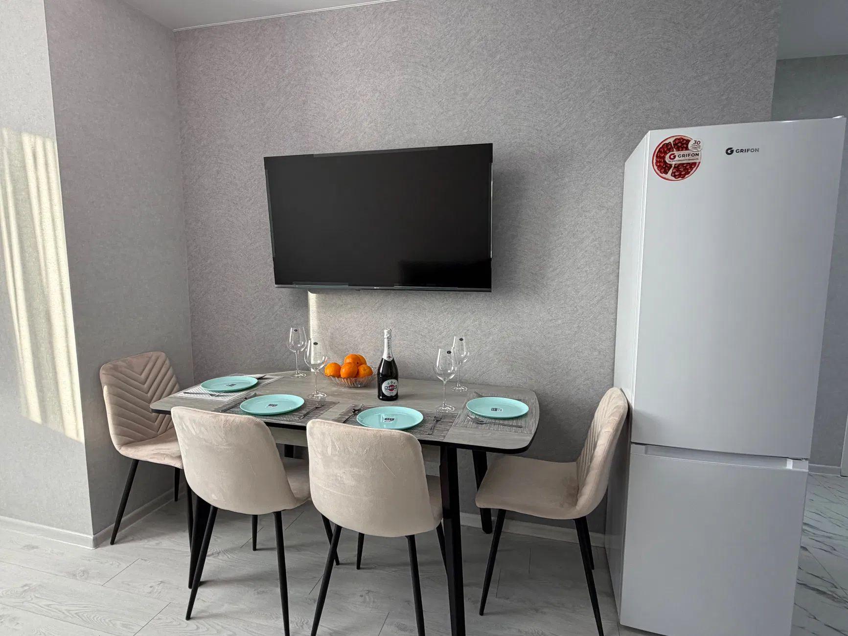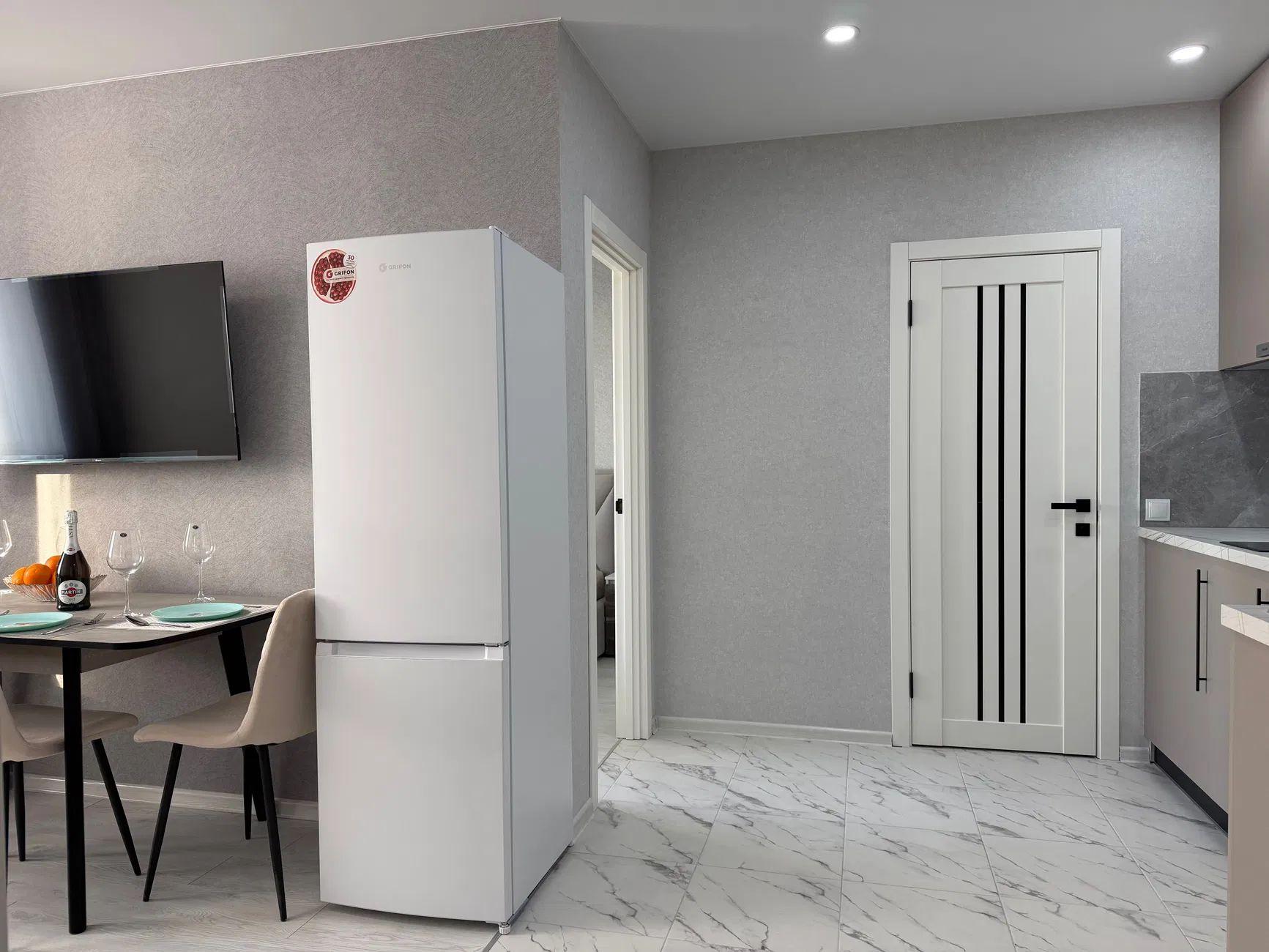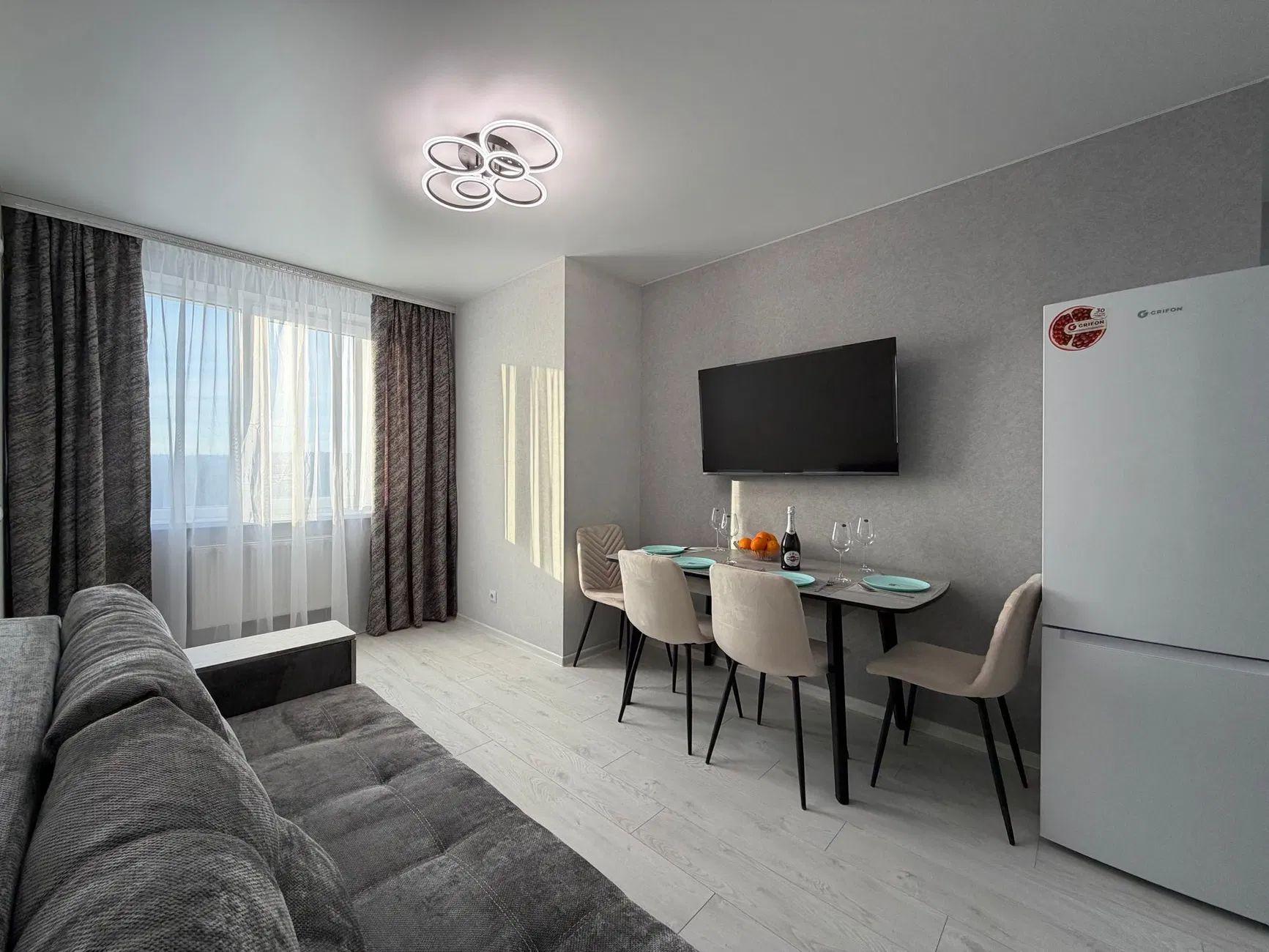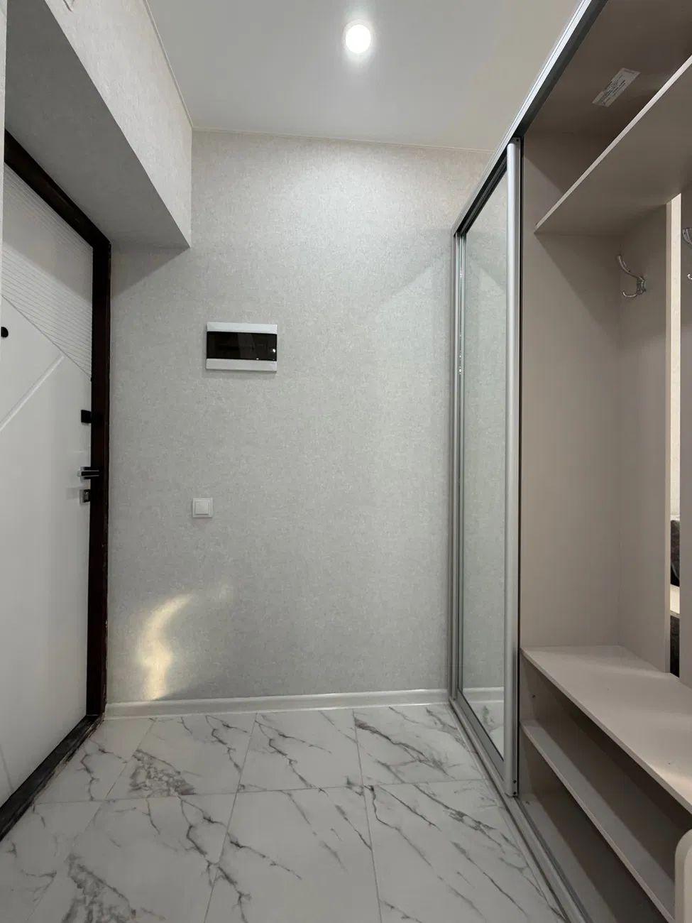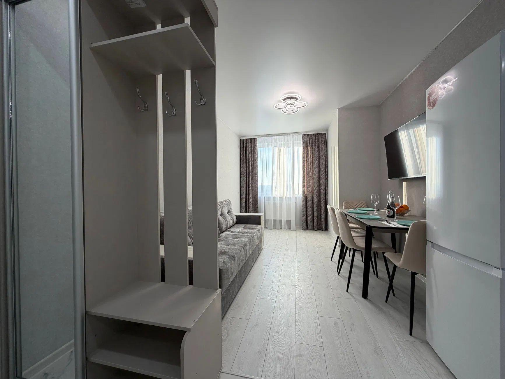 Новый евроремонт, формат квартиры: евродвушка, отдельная спальня и кухня-студия.