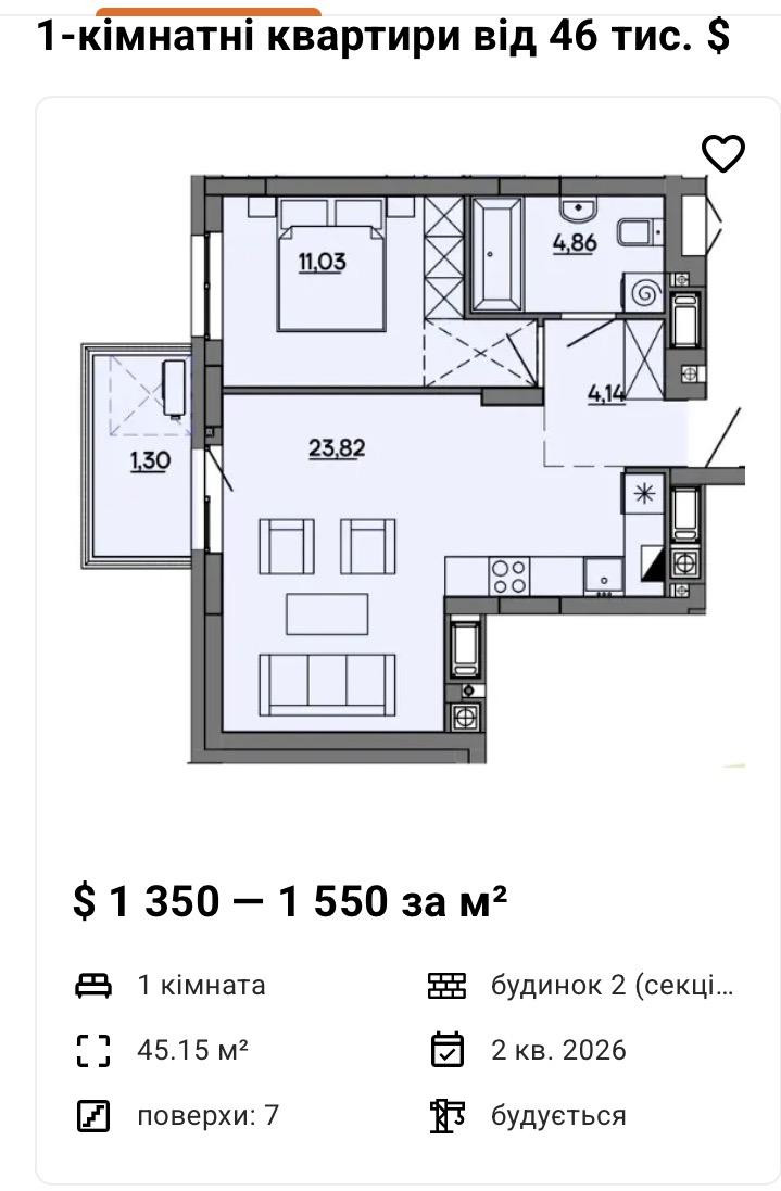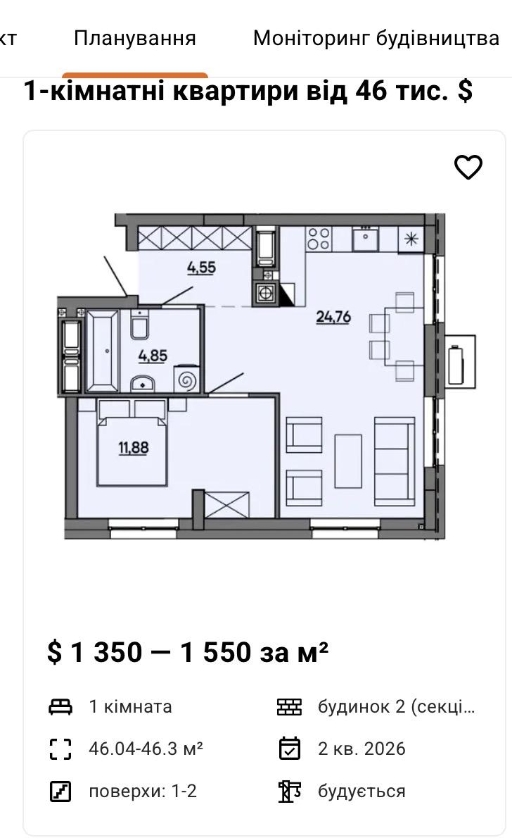 - Цена за кв. метр: 1 520 $
