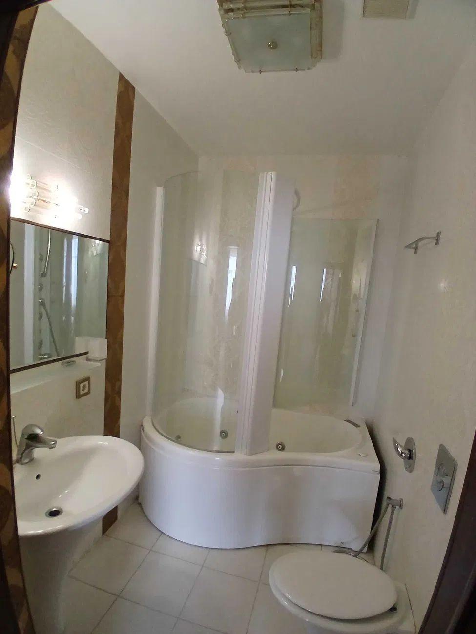 Формат: прихожая, кухня-студия, спальня, санузел с джакузи и санузел с душевой кабиной.