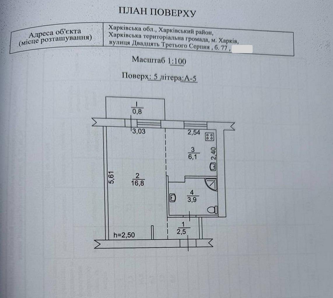 Продається 1-кімнатна квартира 32 м² з кухнею студією та частковим ремонтом у Харкові, район Павлове Поле, вулиця 23 Серпня.
