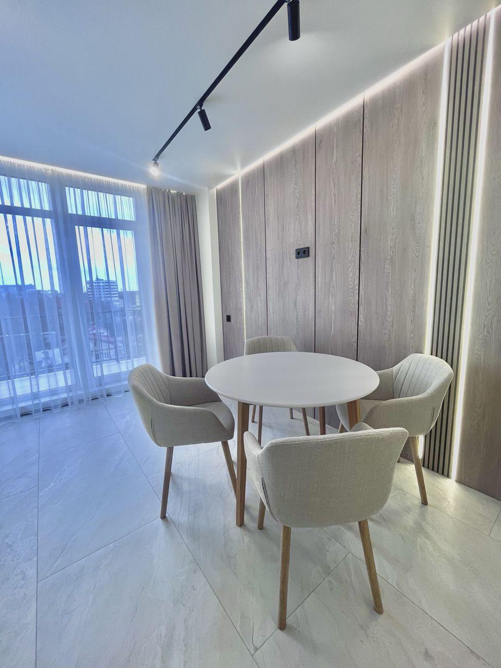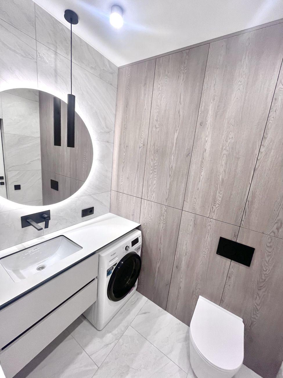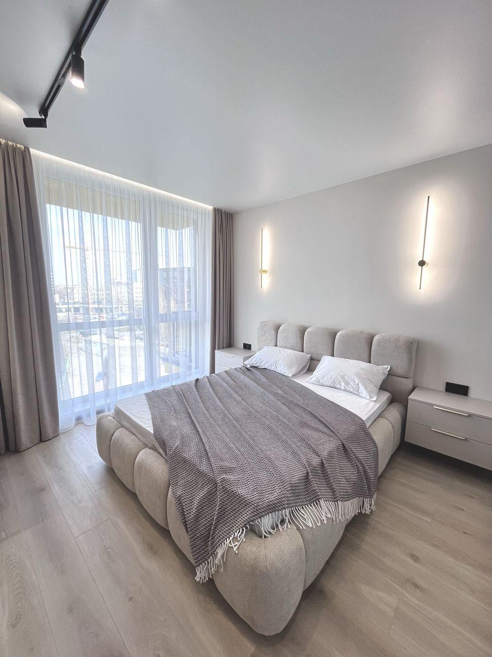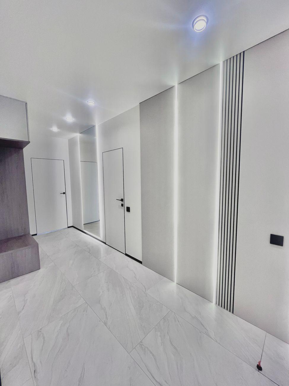 Квартира светлая и просторная, с современным стильным дизайном, качественным ремонтом и новой встроенной техникой. Оснащенная техникой Bosch, установлен телевизор Samsung, есть стирально-сушильная машина. Теплый электрический пол установлен повсюду, где есть плитка.