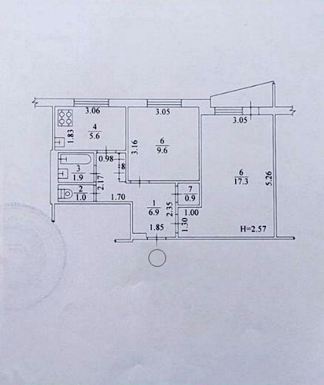 Этаж – 6/9, общ. площадь – 44,8 м²., жилая – 27 м².