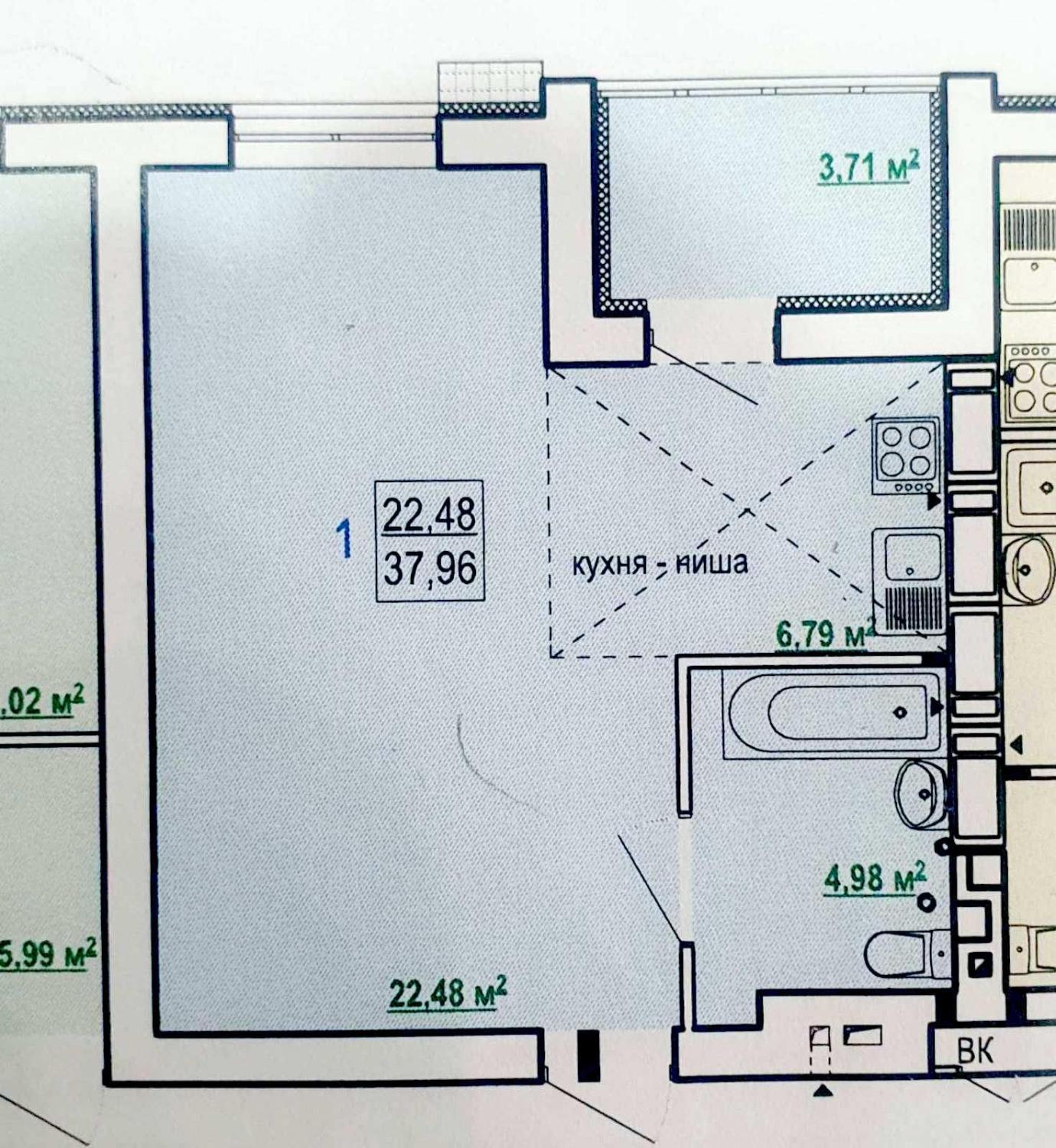 - Площадь кухни, м²: 7