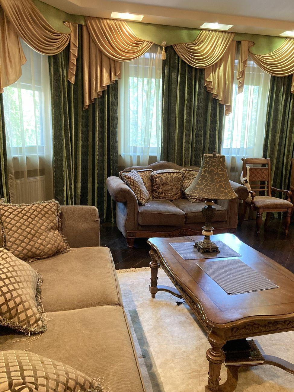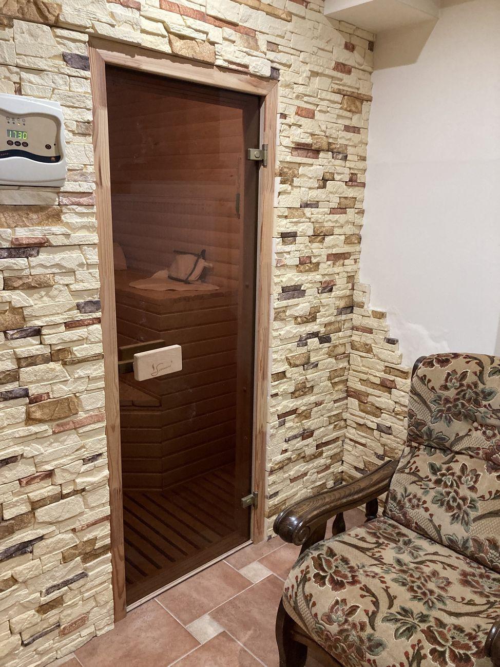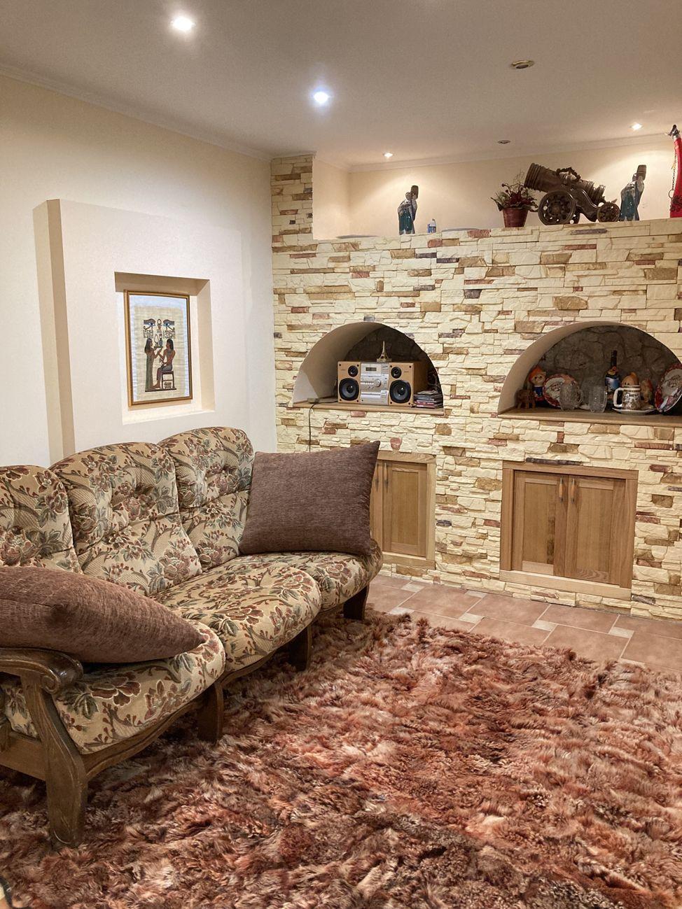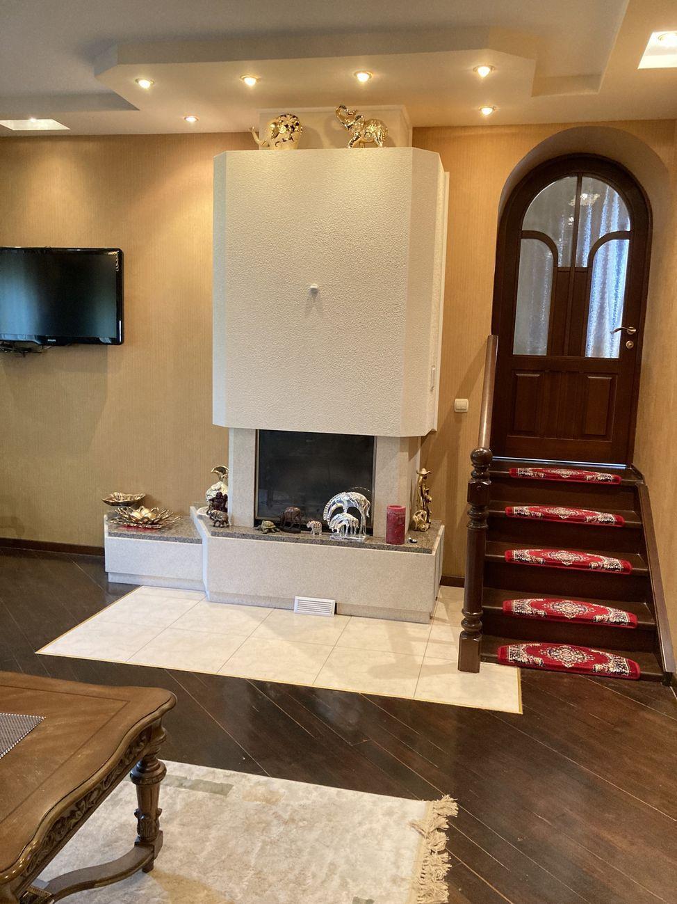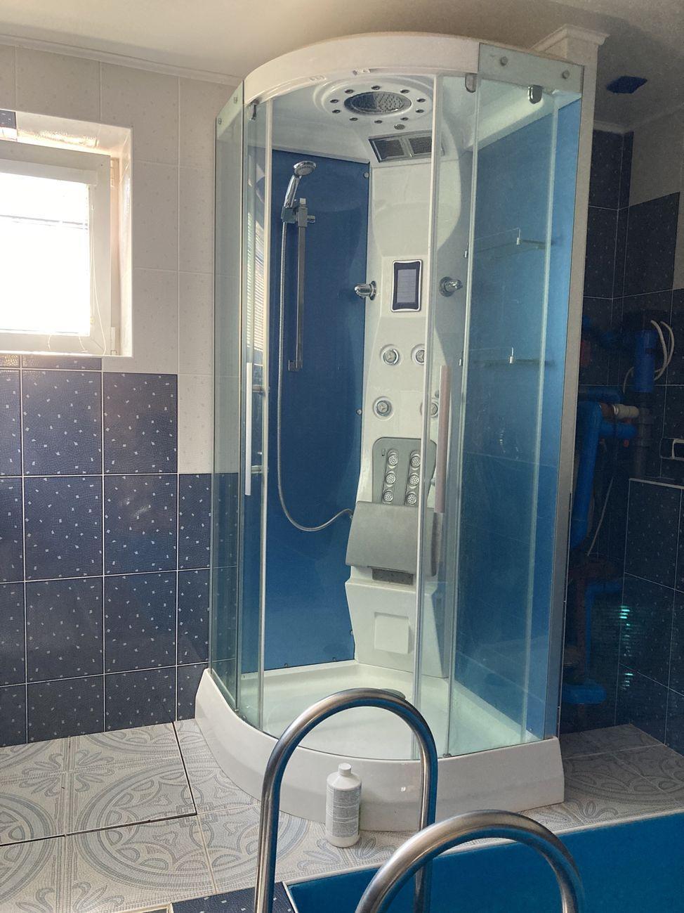 Цокольный этаж : сауна с бассейном и зоной отдыха, бойлерная, гараж ( с автоматическими воротами) . Коммуникации :- вода из скважины, есть колодец, установлена система очистки воды ;