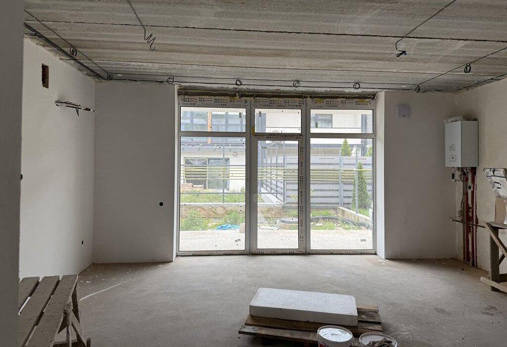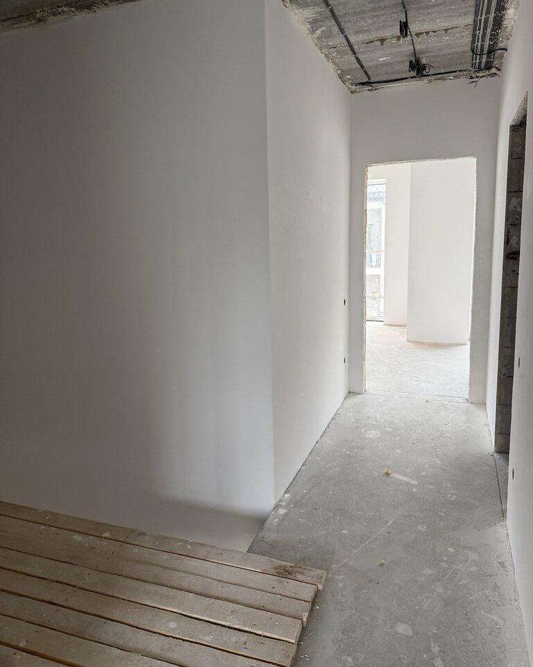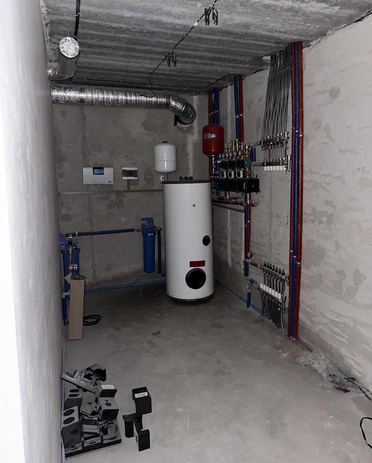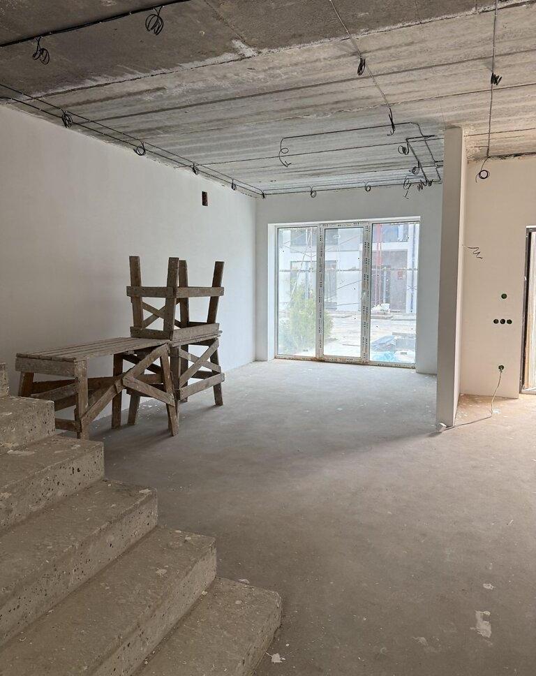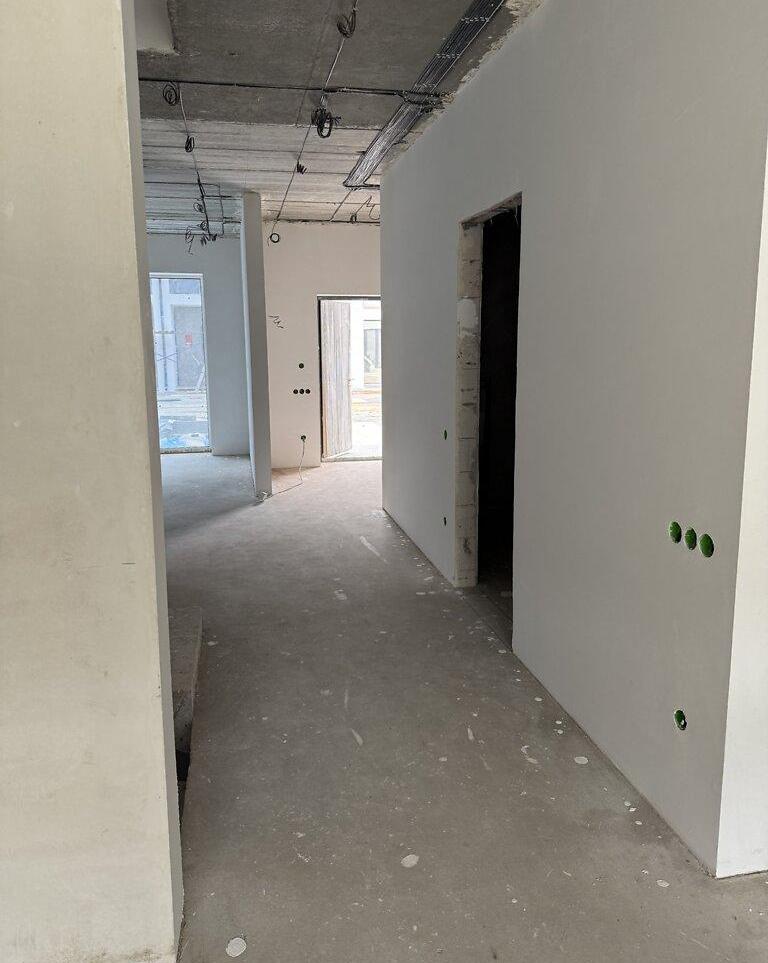 Все черновые работы сделаны в тауне: стяжка пола, шпаклевка и штукатурка стен, произведен монтаж водоснабжения, канализационной и газовой систем, установлена система отопления, электроснабжение (укладка кабелей, щитовой и подрозетники), проложены кабели для видеообзора, гидроизоляция -1 этажа.