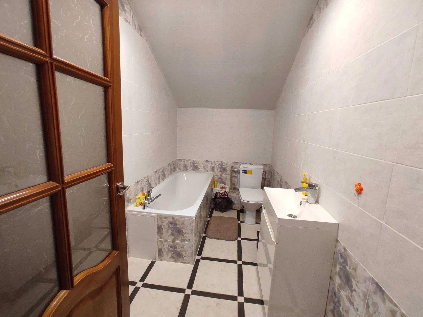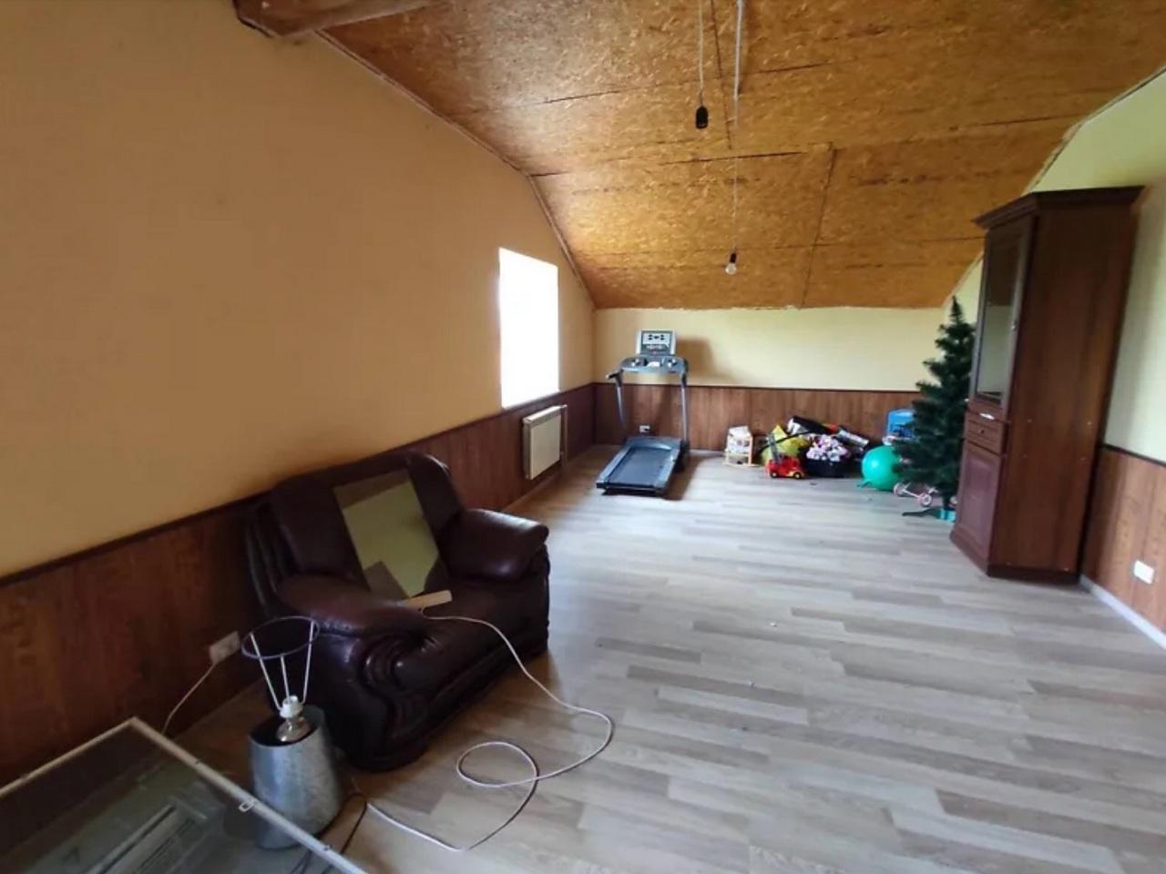 1-этажный дом с мансардным этажом, общ. площадь – 161 м²., кухня – 14,8 м²., 5 комнат, 2 санузла, подвал – 12 м²., терраса.